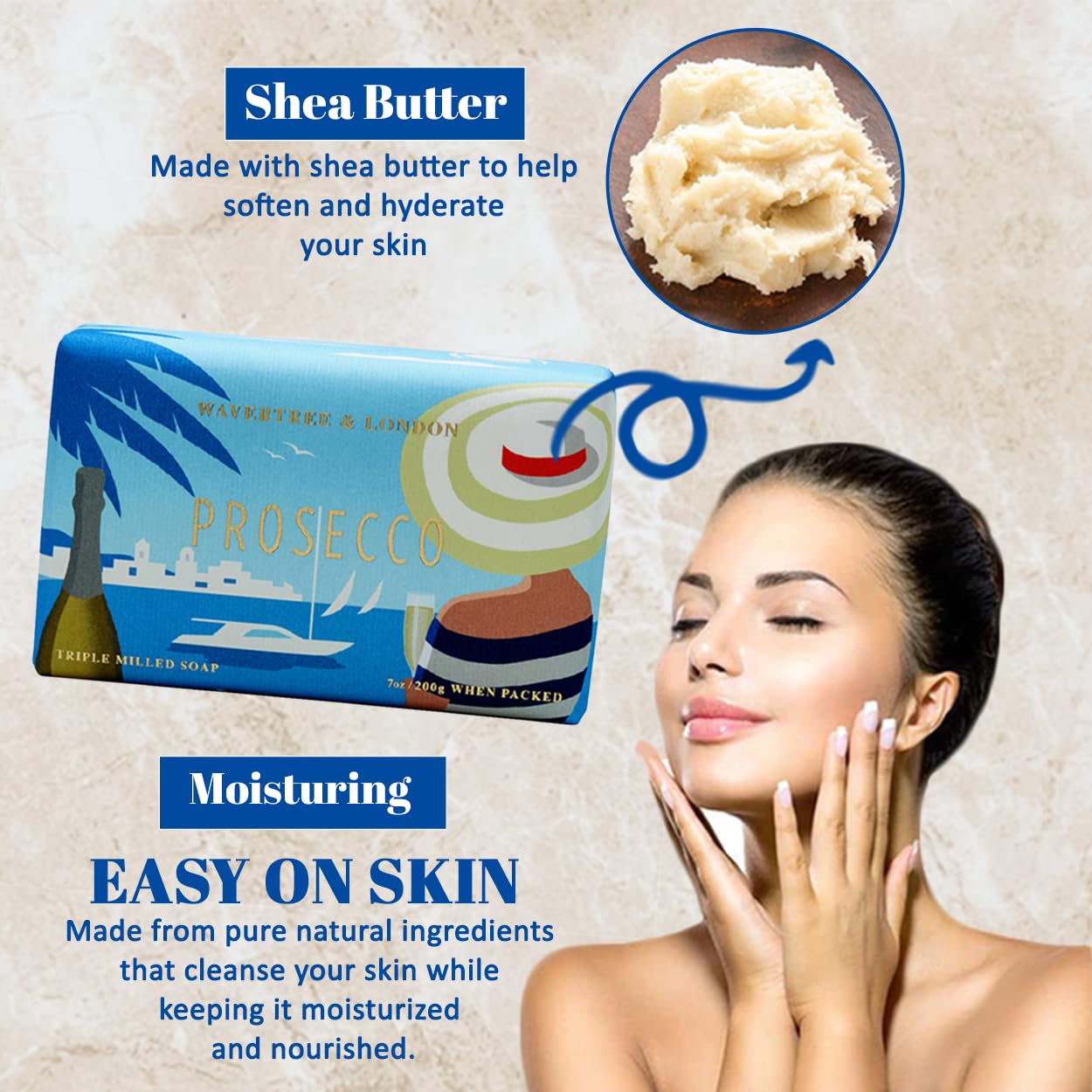 Wavertree & London Prosecco Scented Natural Soap (8 Bars), 7oz Moisturizing French Triple Milled Soap Bars enriched with shea butter - Pure Plant Oil Bath & Body Bars for All Skin Types