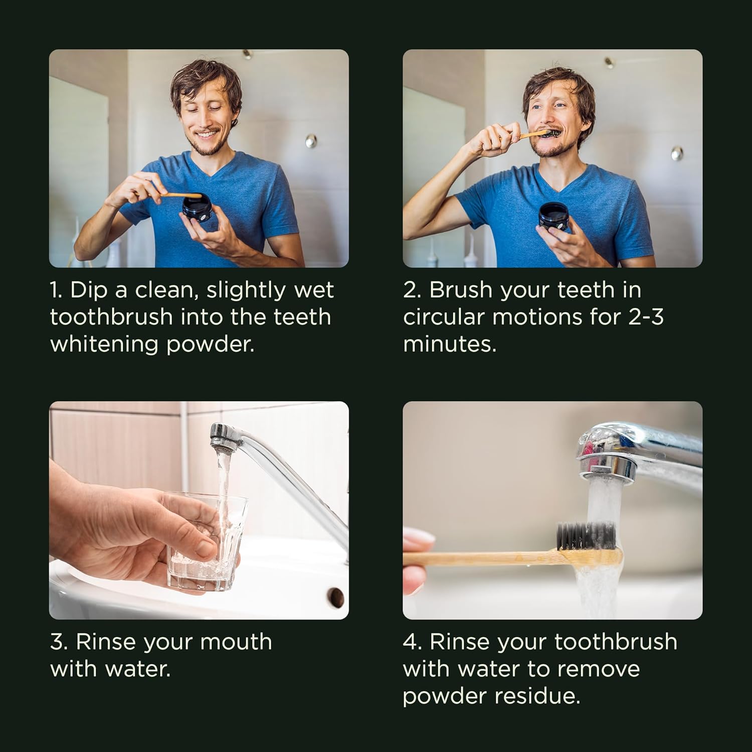 - Enjoy a brighter smile: Keep your pearly whites pristine with our advanced charcoal teeth whitening powder. Made with dentist-approved ingredients, it cleans teeth and gums, removes surface stains, and brightens your smile. Itâs easy to use, tooâsimply place your wet toothbrush into the powder and brush as normal.