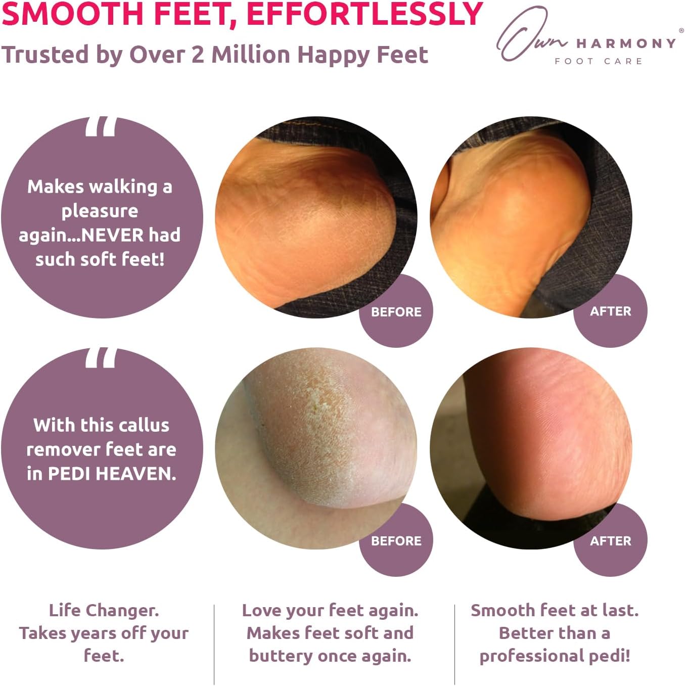 Electric Callus Remover for Feet: Professional Foot Care for Women by Own Harmony - Rechargeable Pedicure Tools - Electronic Foot File Pedi Sander - Best for Hard, Dry, Dead, Cracked Skin (3 Rollers)