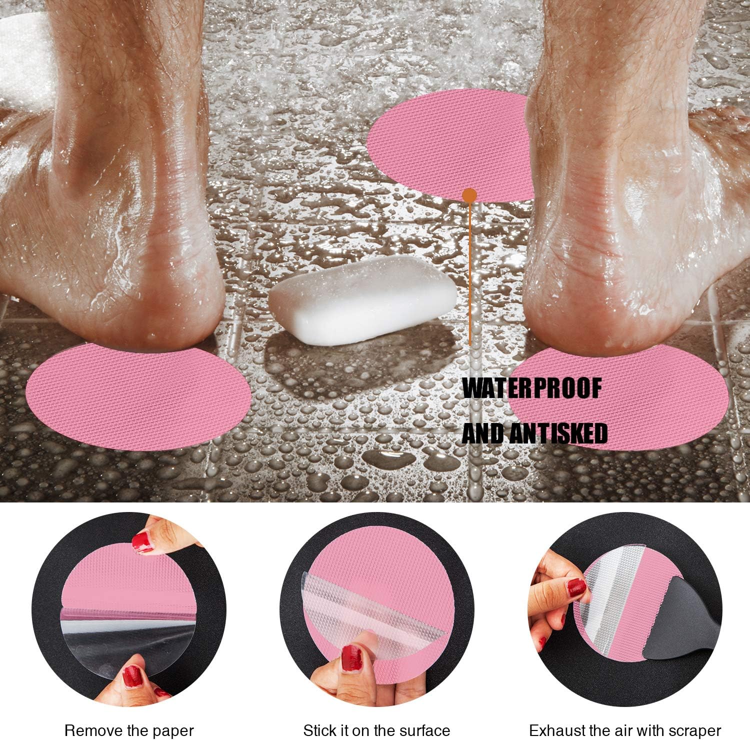 Non-Slip Bathtub Stickers, 24PCS Safety Bathroom Tubs Showers Treads Adhesive Decals Scraper (Pink)