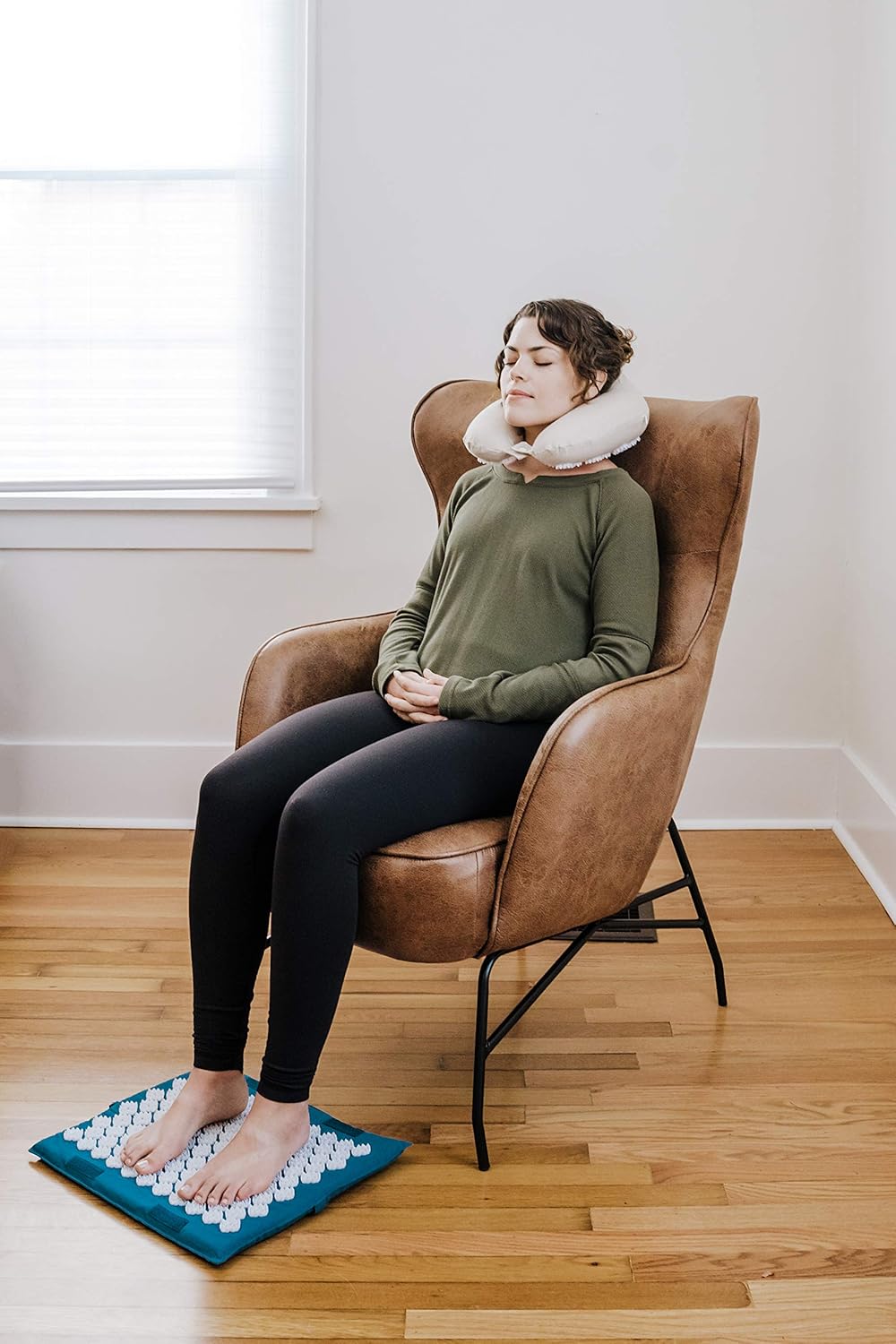 Kanjo Travel Acupressure Set | Acupressure Neck Pillow & Compact Acupressure Mat for Neck, Foot & Back Pain Relief| Travel Pillow & Travel Mat Set for Stress Relief & Relaxation