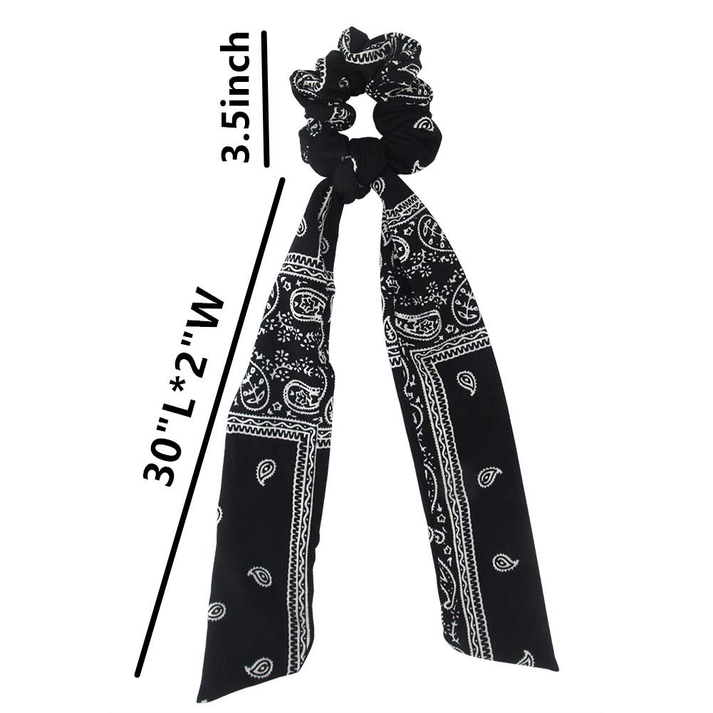 Paisley Hair Scrunchies with Bow Hair Scarves Scrunchy Ponytail Holder Elastics Hair Bands Ribbon Hair Tie for Women Girls with 6PCS