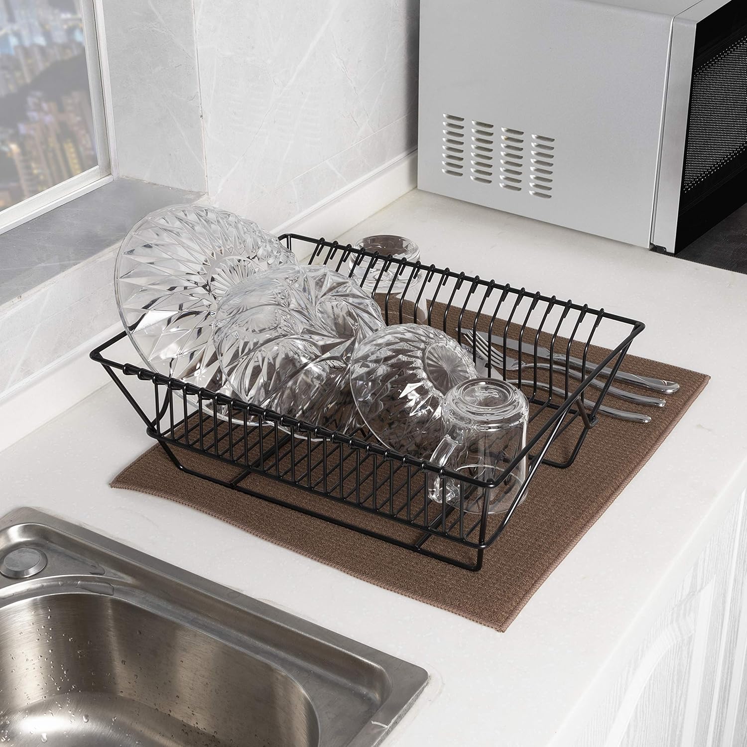 - DECORATIONS - Catches drips under a dish rack or place pots, pans, serve ware and glassware directly on the mat