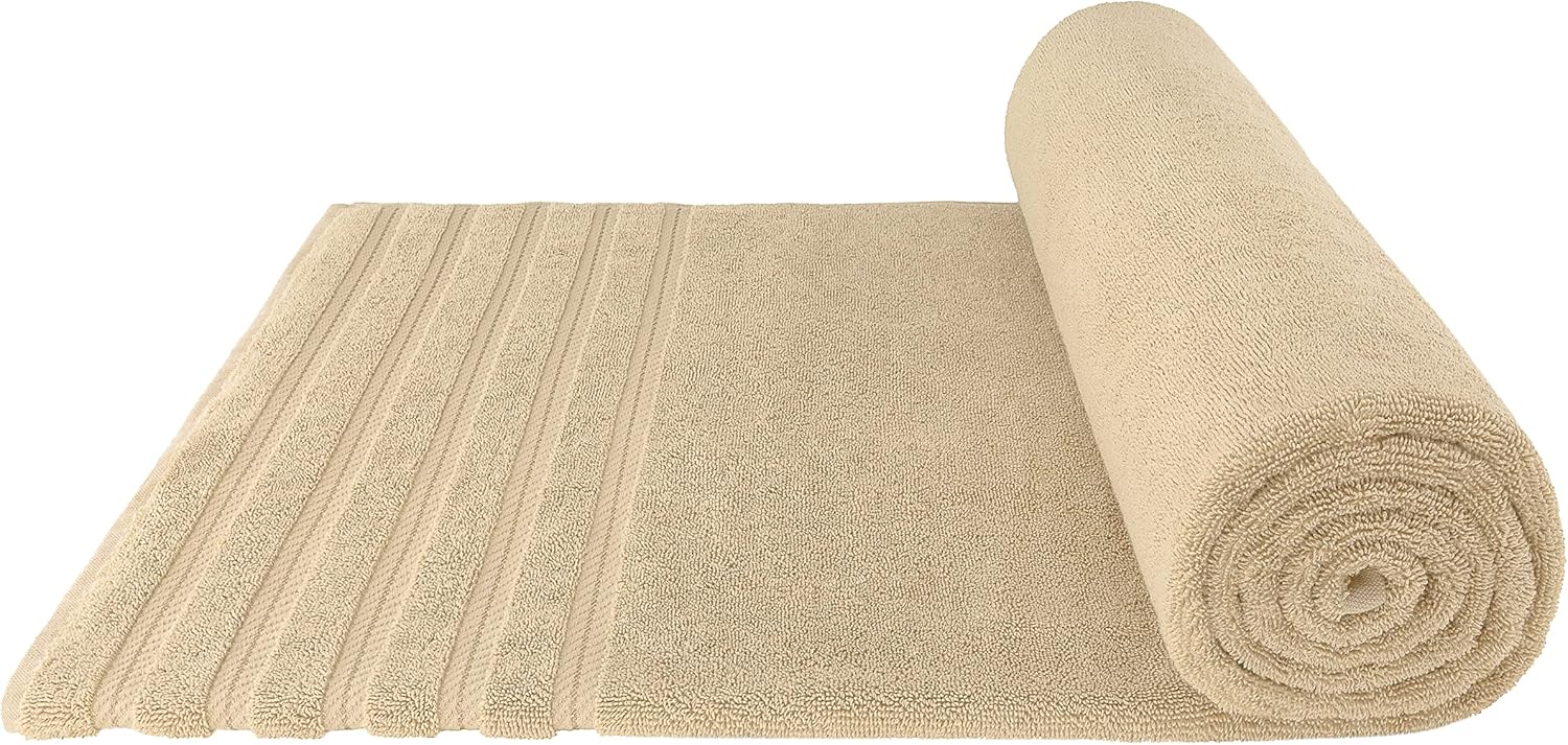 American Soft Linen 35x70 Jumbo Large Bath Towels, 600 GSM 100% Cotton Turkish Bath Sheet, Oversized Luxury Bath Towels for Bathroom Beach and Pool, Beige
