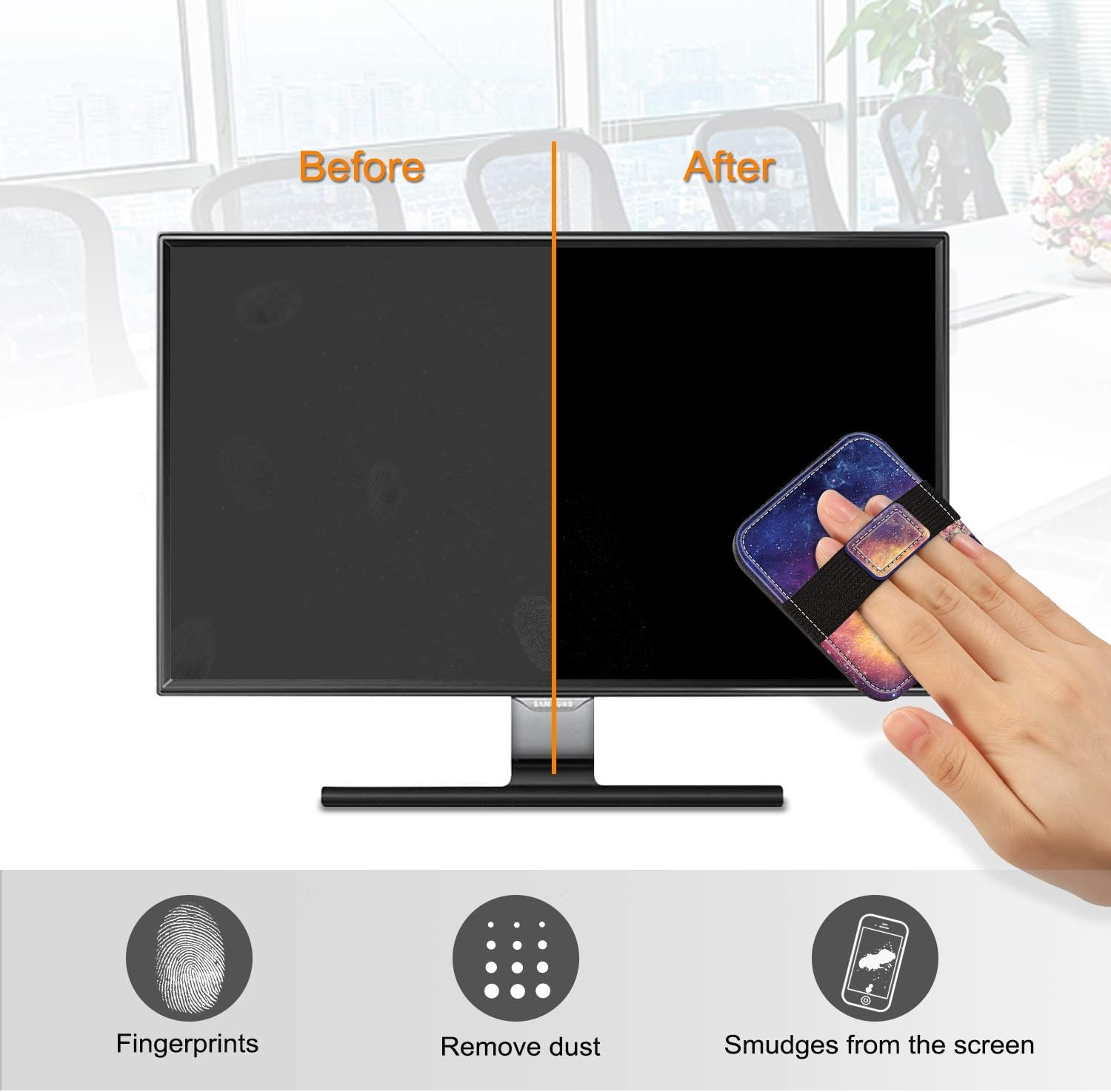 - Features elastic handle strap for any hand size, easy to keep hold of the clean pad while wiping across the screen.