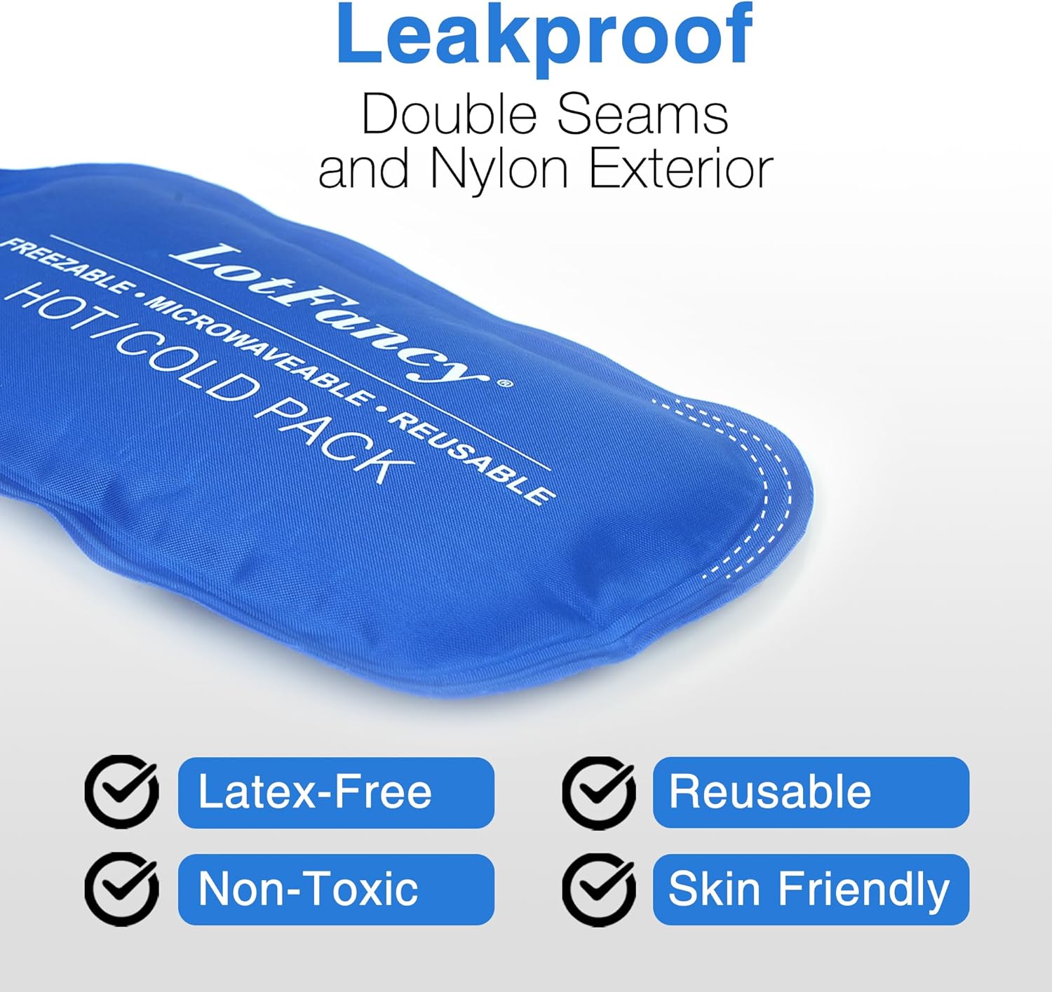 - REUSABLE & DURABLE & SAFE: Cooling or Heating Gel packs are latex-free and non-toxic, safe for all ages to use. Double sealed with a thick nylon exterior to prevent leaking