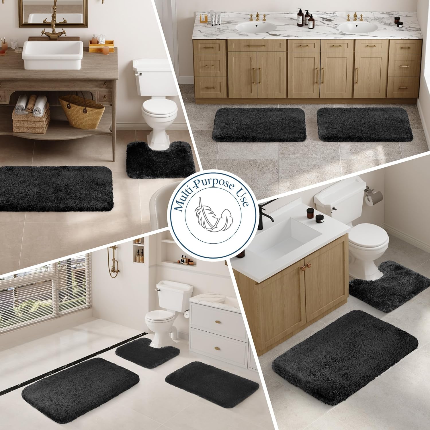 Walensee Bath Mat, High Pile Microfiber Bathroom Rug, Non-Slip, 16 x 24, Black