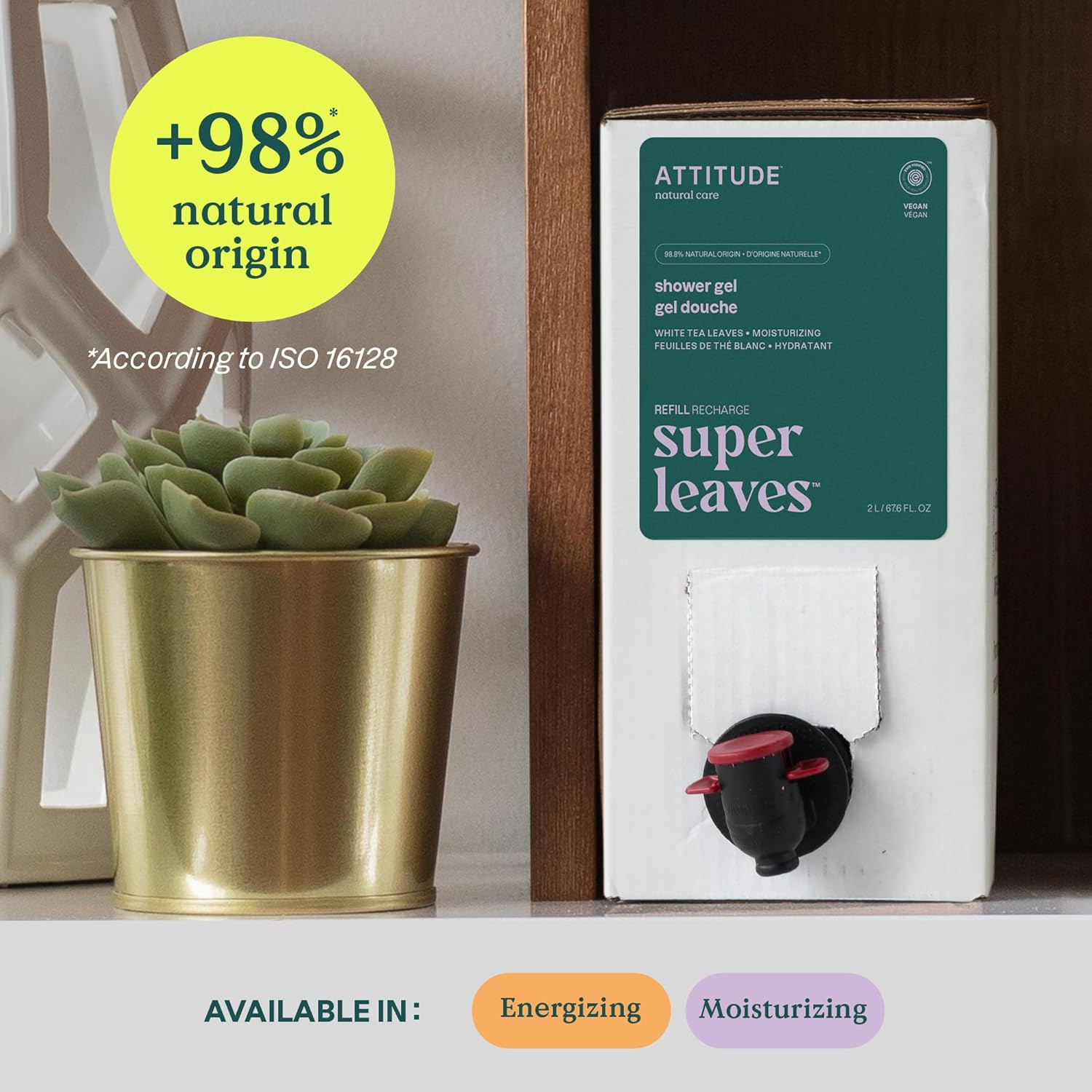 ATTITUDE Body Wash, EWG Verified Shower Gel, Dermatologically Tested, Plant and Mineral-Based, Vegan Personal Care Products, White Tea Leaves, Bulk Refill, 67.6 Fl Oz