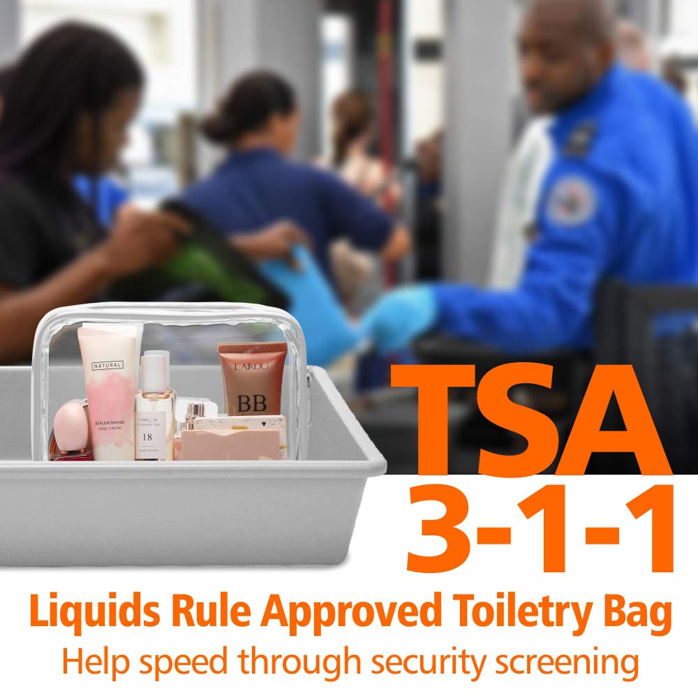 - TSA Approved: The 7.5 x 5.5 x 2.2 inch clear travel toiletry bag strictly follows TSA 3-1-1 liquids rule for carry-on bag of all airlines, so you can easily and quickly pass through security screening with it in the airport