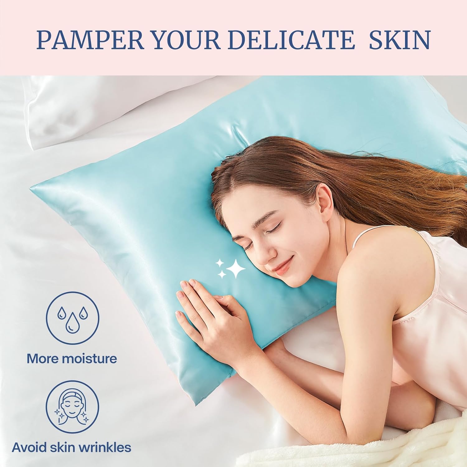 BEDELITE Satin Pillowcase for Hair and Skin, Super Soft and Cooling Similar to Silk Pillow Cases 2 Pack with Envelope Closure, Gift for Women Men(20"x30" Queen Size, Blue)