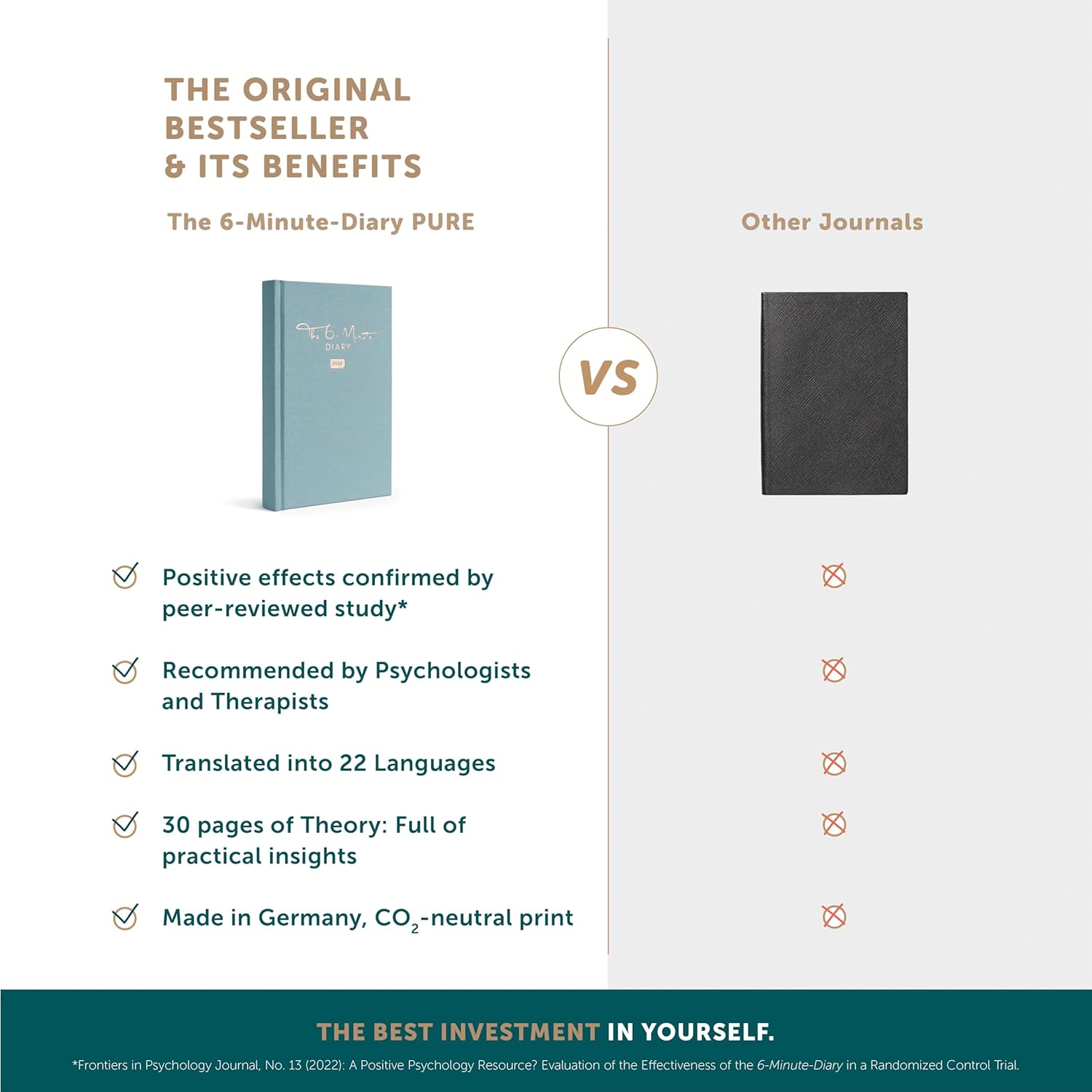 - ✅JOURNALING MADE EASY with Proven Techniques: Don’t know where to start? The 6 Minute Journal is the world's most beloved guided journal for a reason! All the journal prompts are backed by the proven principles of positive psychology. This undated self care journal allows you to begin whenever you’re ready!