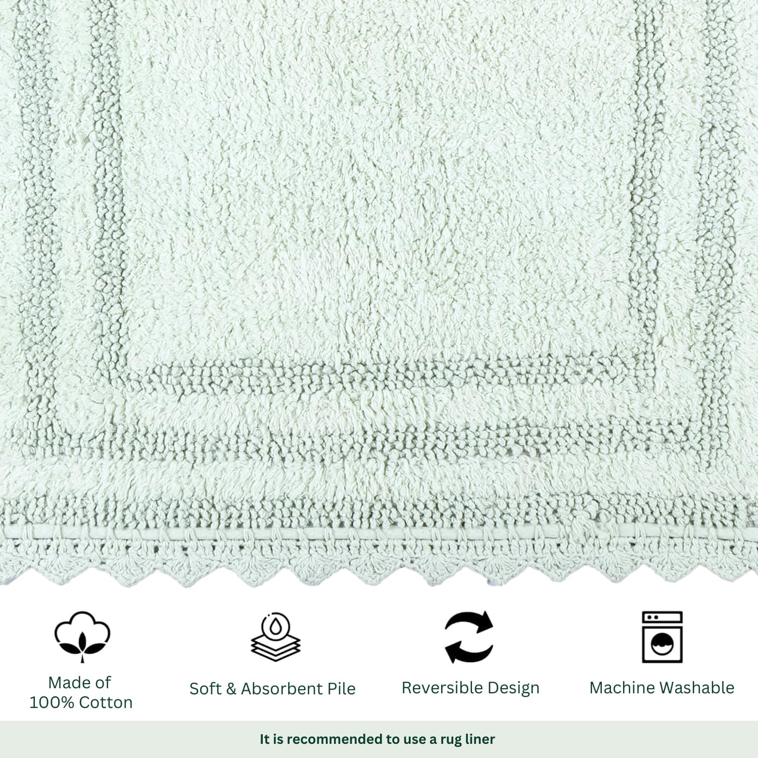RAJRANG Bath Rug for Bathroom Kitchen Spa with Crochet Cotton Absorbent Soft Reversible Woven Bath Mat Meadow Mist Rectangle 34x21 Inches