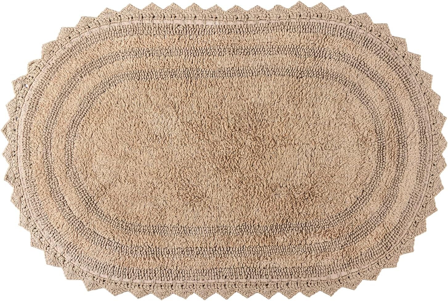 RAJRANG Sand Bathroom Rug with Crochet Pattern Soft Absorbent Reversible Boho Cotton Bath Mat Warm Sand Oval 34x21 Inches