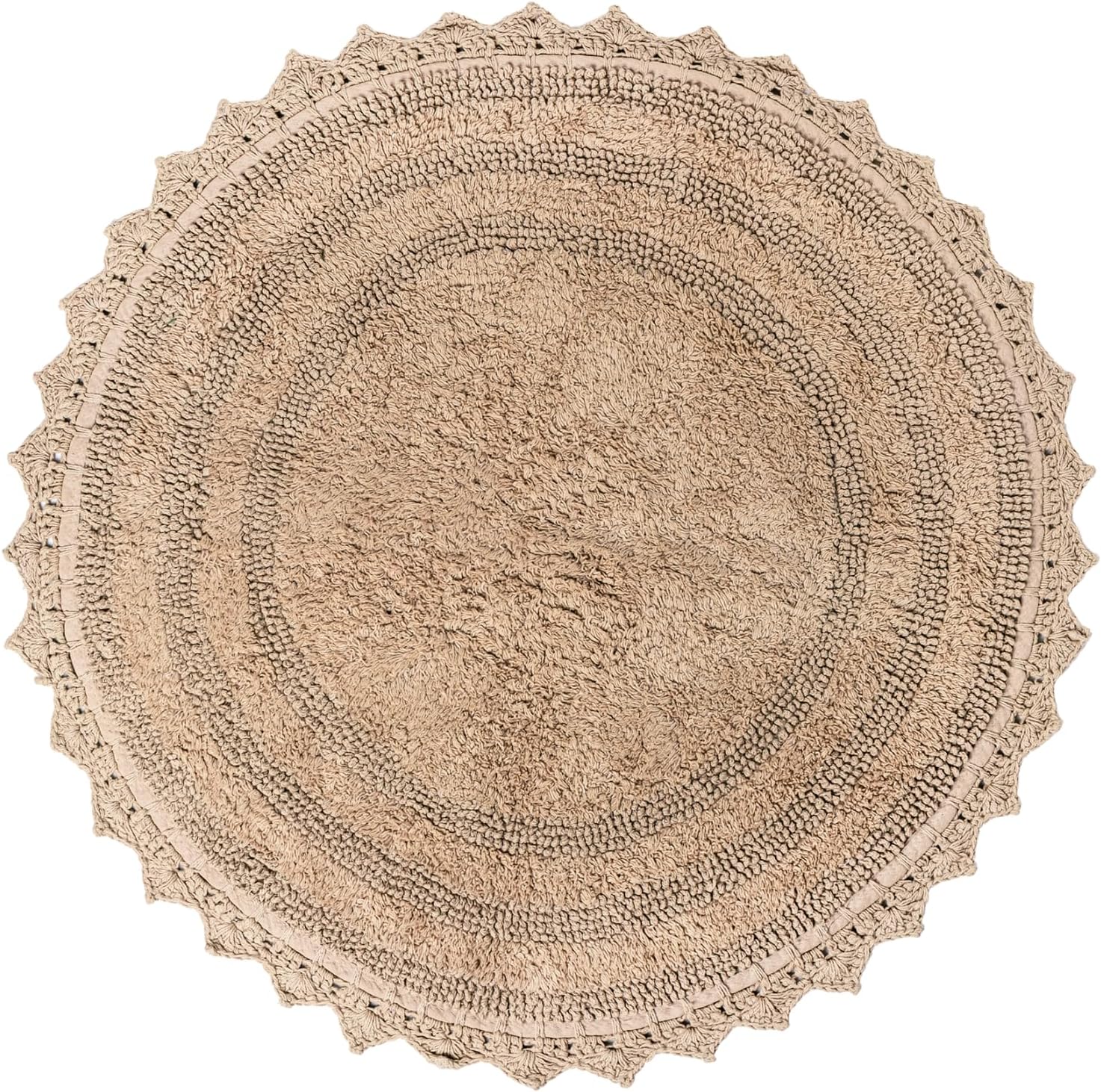 RAJRANG Circle Bathroom Mat for Kitchen and Spa with Crochet Pattern Cotton Absorbent Soft Reversible Woven Bath Rug Sand Round 24 Inches