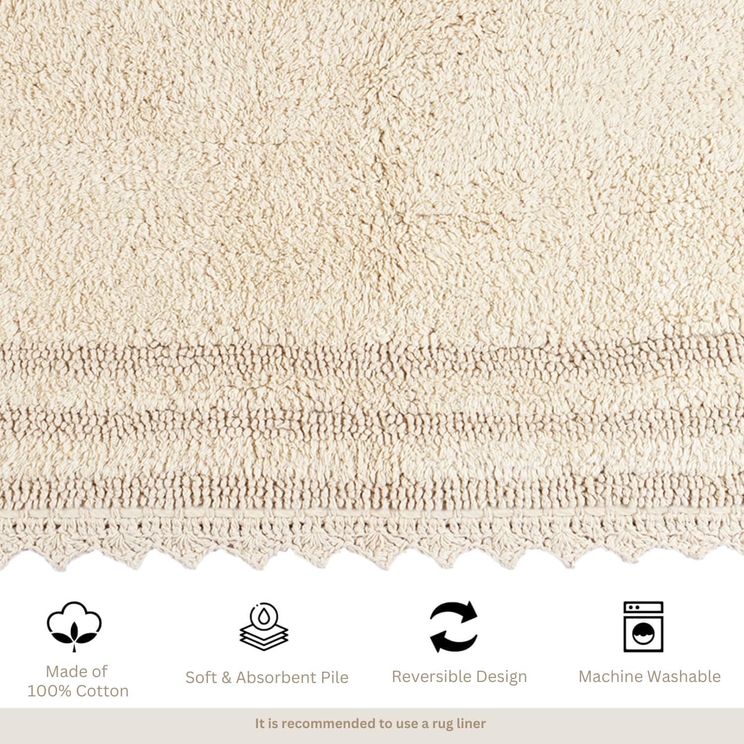 RAJRANG Bath Rug for Bathroom Cotton Absorbent Soft Reversible Woven Bath Mat Shortbread Rectangle 34x21 Inches