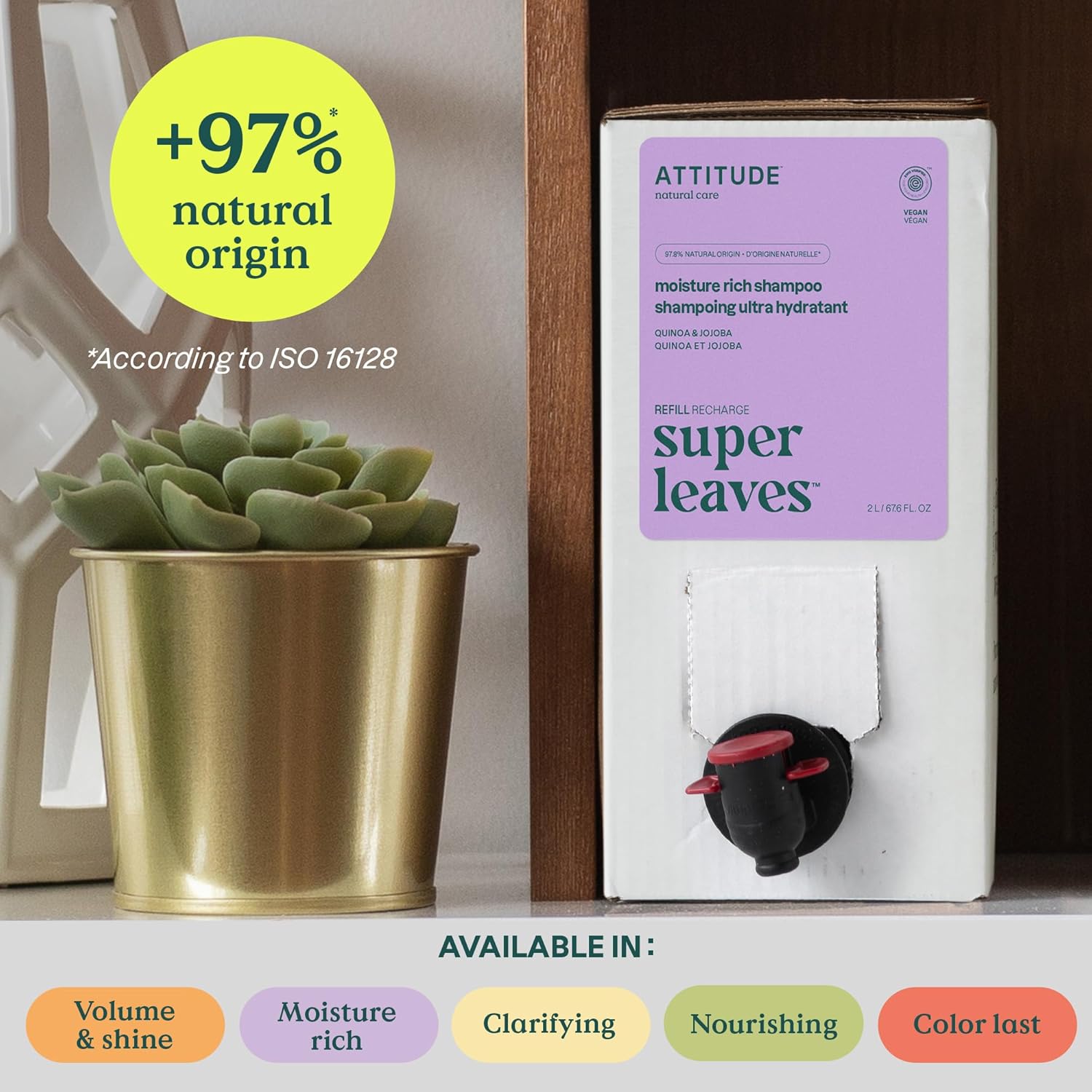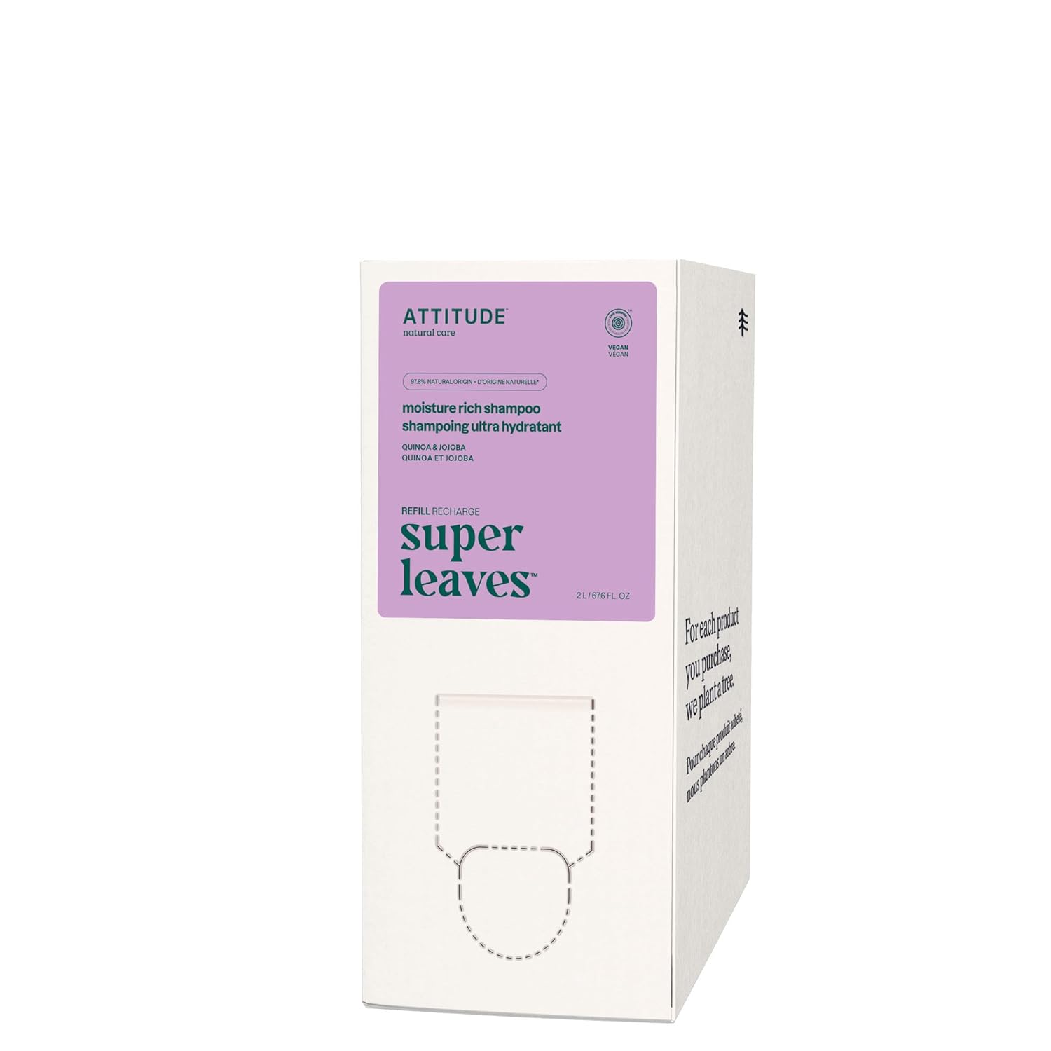 ATTITUDE Moisture Rich Hair Shampoo, EWG Verified, For Dry and Damaged Hair, Naturally Derived Ingredients, Vegan and Plant Based, Quinoa and Jojoba, Bulk Refill, 67.6 Fl Oz