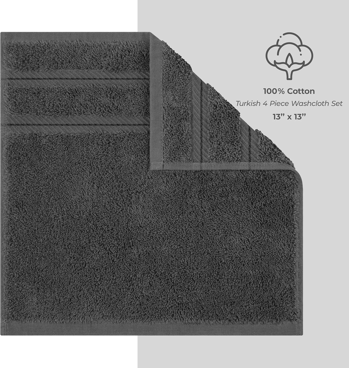 American Soft Linen Luxury Washcloths for Bathroom, 600 GSM 100% Cotton 4 Piece Turkish Wash Cloth Set, 13x13 in Soft Rags for Body and Face, Dark Gray Washcloths
