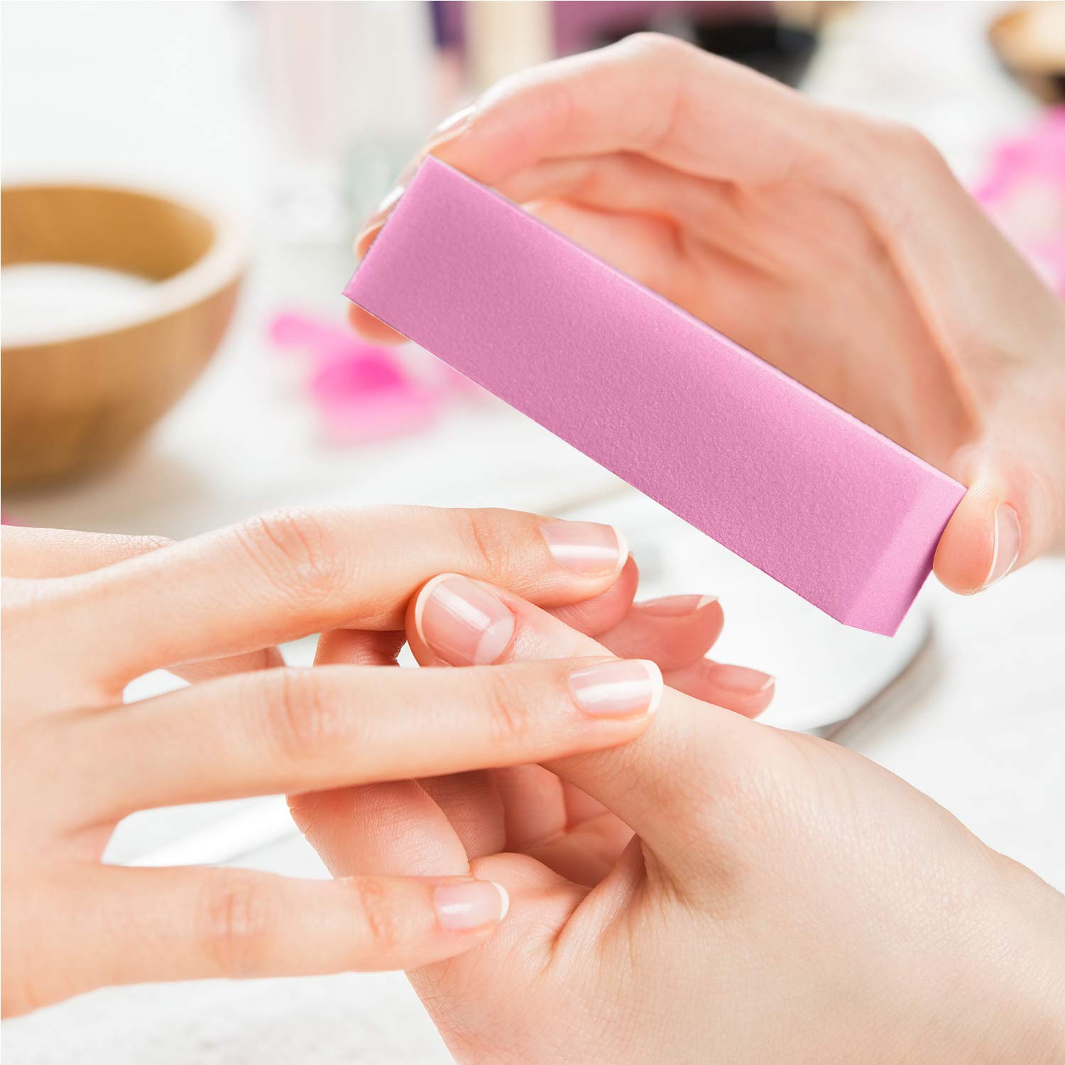 - Quantity: package include 12 pack pink 4-way buffer sanding blocks, can be applied for both natural and acrylic nails to shape up uneven cuticle on your nails, buffering your nails in a smooth finish; Using before applying nail treatments or nail polish