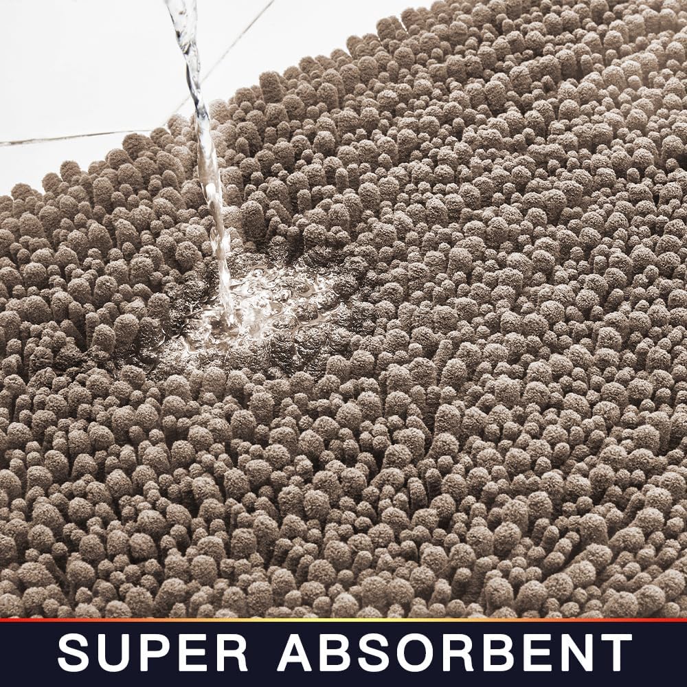 - Ultra Absorbent: The microfiber shag bath rug is much more absorbant than cotton bath rugs. High-pile chenille fabric helps save your floors from dripping water while youâre stepping out of the bath, shower, spa, or getting ready by the sink. Moisture is trapped in the matâs deep pile, allowing the rug to dry quickly and cleanly.