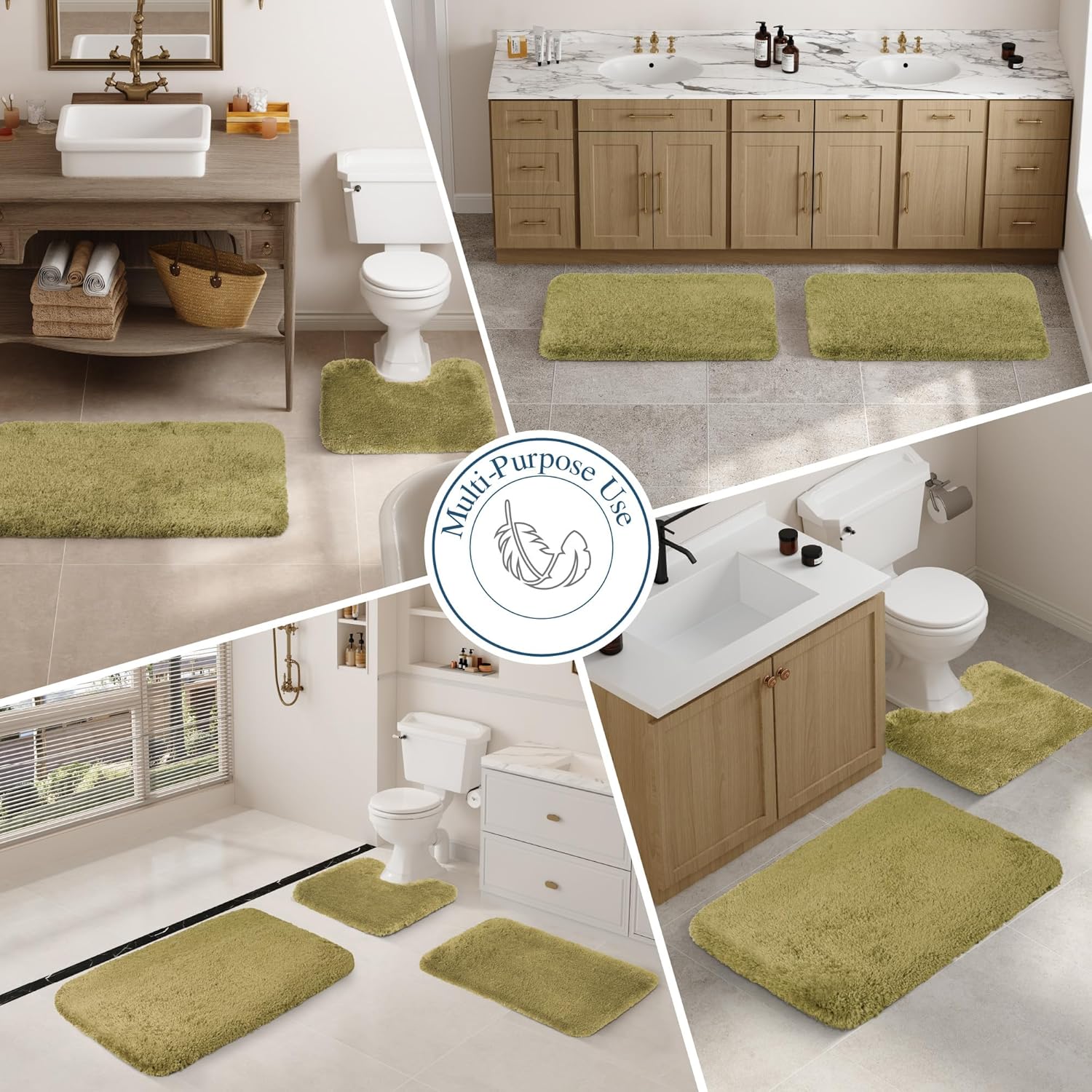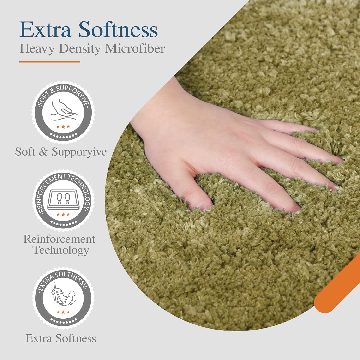 Walensee Bath Rug - Non Slip, Soft Microfiber Shaggy Bath Mat (20 x 32, Olive Green) Water Absorbent, Machine Washable, Thick Plush Shower Mat