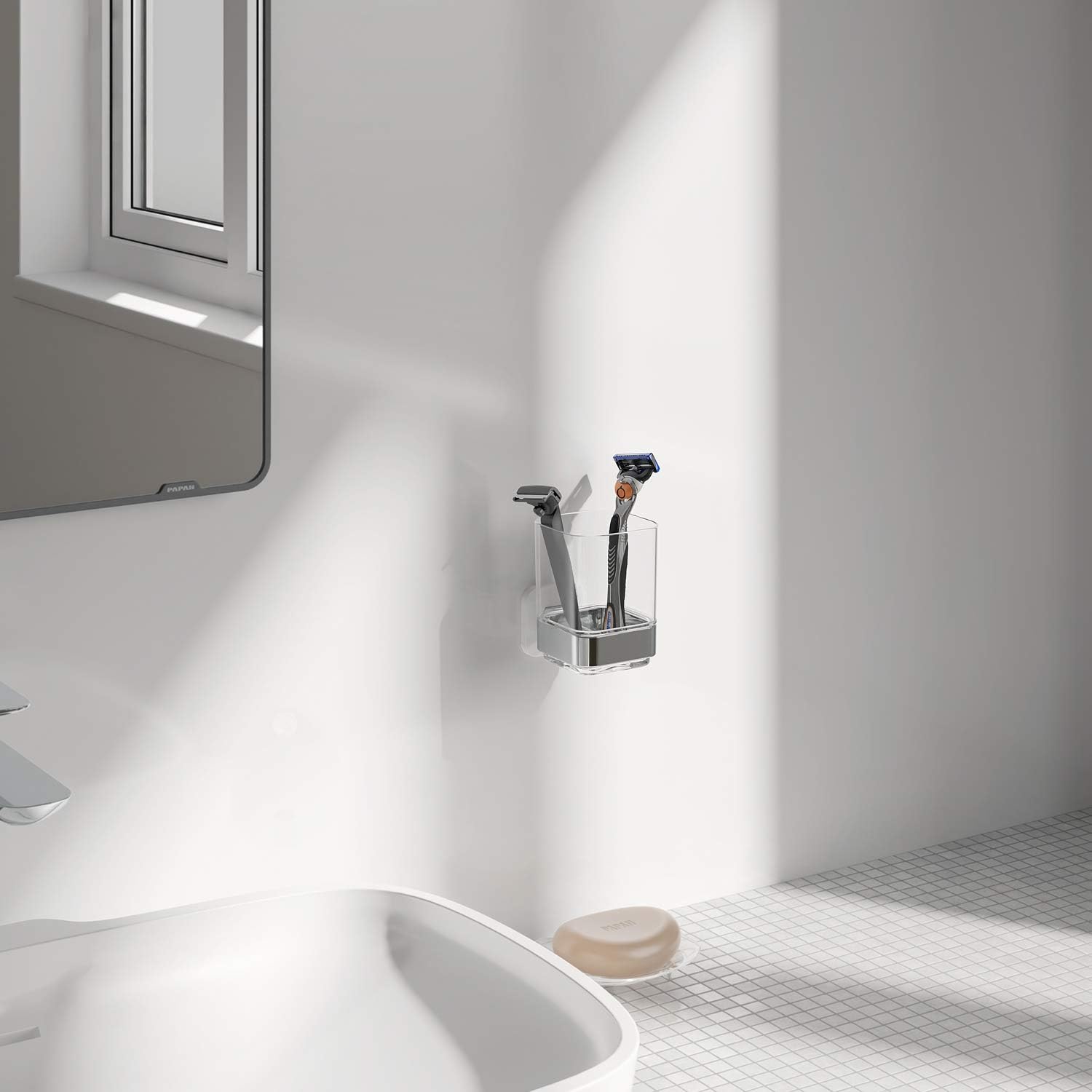 - BATHROOM ORGANIZER: Toothbrush Holder is manufactured to standards that ensure the highest strength and durability in wet environments. Clear plastic toothbrush holder cup suctions onto shower walls or bathroom and vanity mirrors to hold your toothbrushes, toothpastes, and razors, makeup tools or to be used as a tumbler rinsing cup. Great for master bathrooms, kid's, guest's bathrooms, or kitchen.