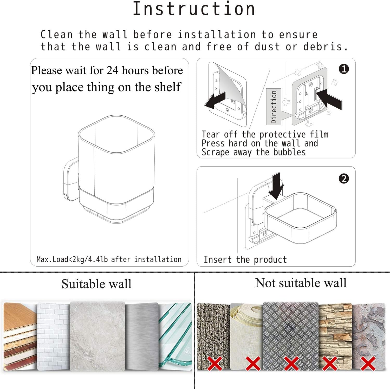 - This wall mounted toothbrush holder is easy to install, Toothbrush Holder No drilling Self-adhesive. for glass, marble, tile, Metal, Plastic Surface, Lacquer plate, etc. Inapplicable surface: Whitewash wall, Rough cement wall, Brick wall, Wallpaper. etc.