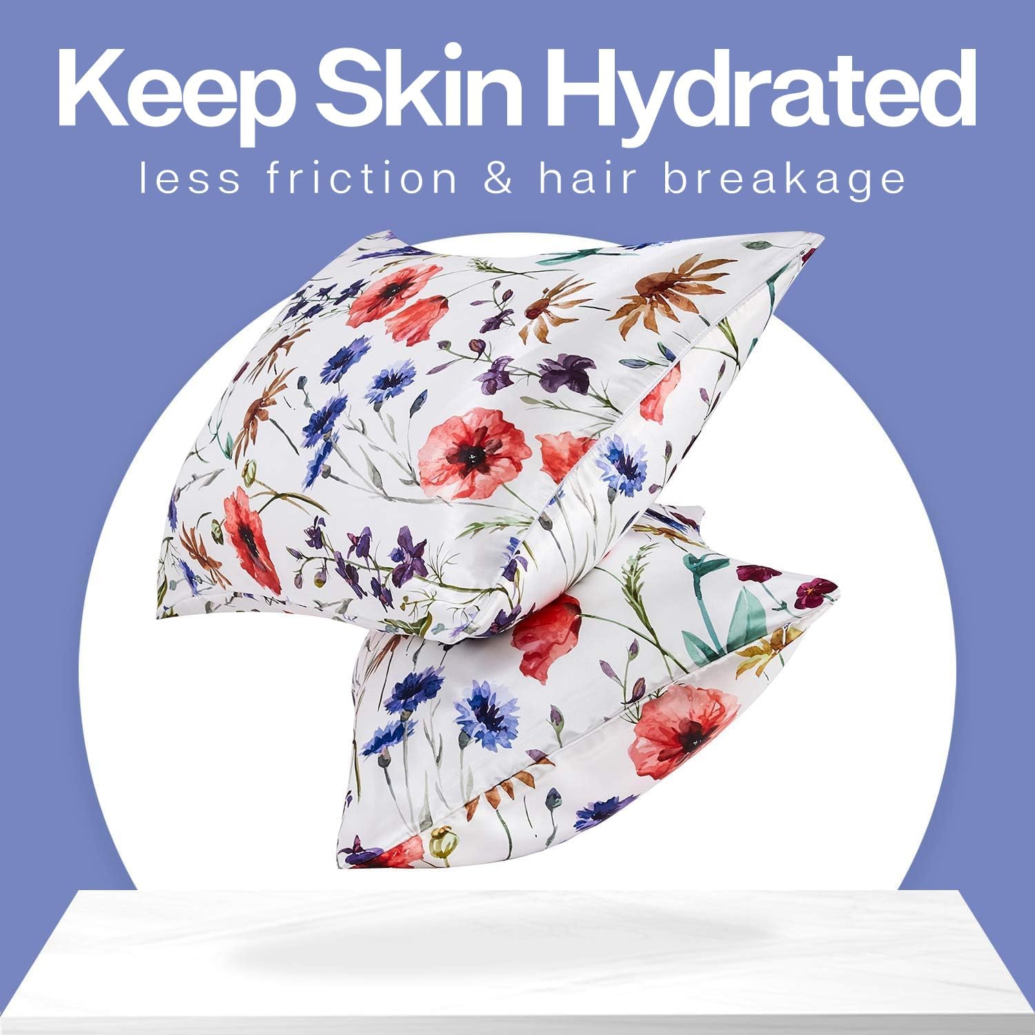 MR&HM Satin Pillowcase for Hair and Skin, Silk Satin Pillowcase 2 Pack, Standard Size Pillow Cases Set of 2, Silky Pillow Cover with Envelope Closure (20x26, Floral Mixted)