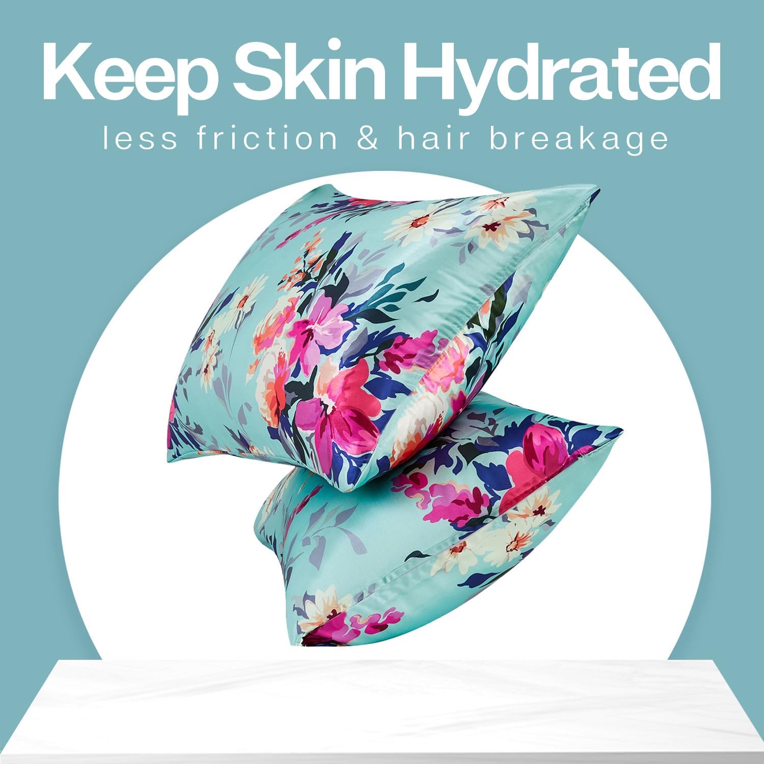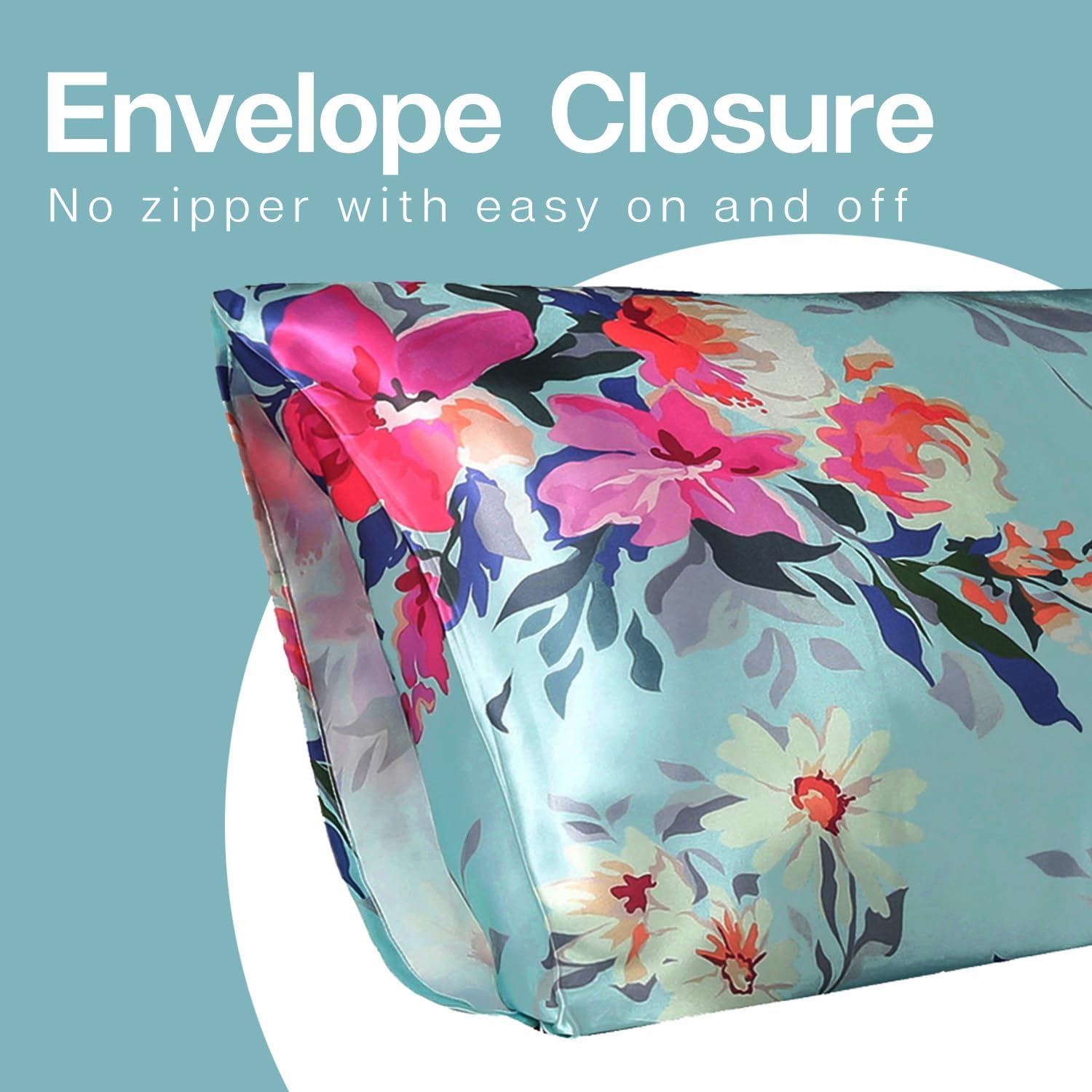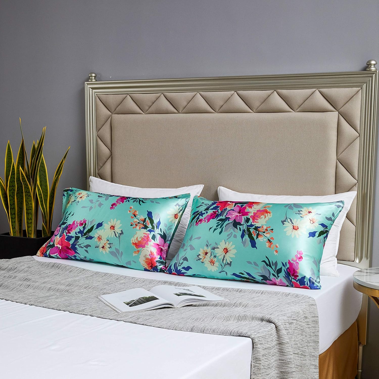 MR&HM Satin Pillowcase for Hair and Skin, Silk Satin Pillowcase 2 Pack, Standard Size Pillow Cases Set of 2, Silky Pillow Cover with Envelope Closure (20x26, Floral Green)