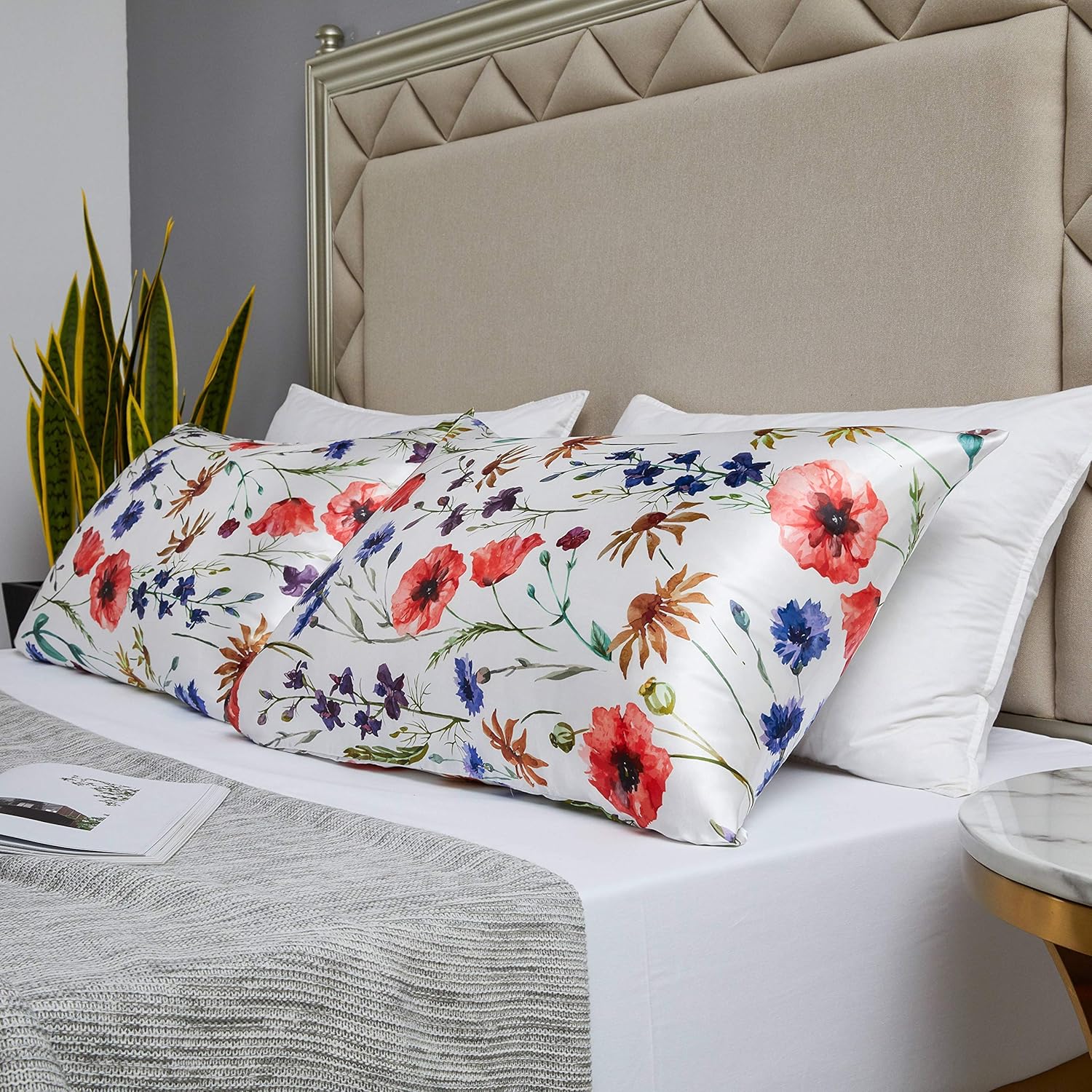 MR&HM Satin Pillowcase for Hair and Skin, Silk Satin Pillowcase 2 Pack, Queen Size Pillow Cases Set of 2, Silky Pillow Cover with Envelope Closure (20x30, Floral Mixted)