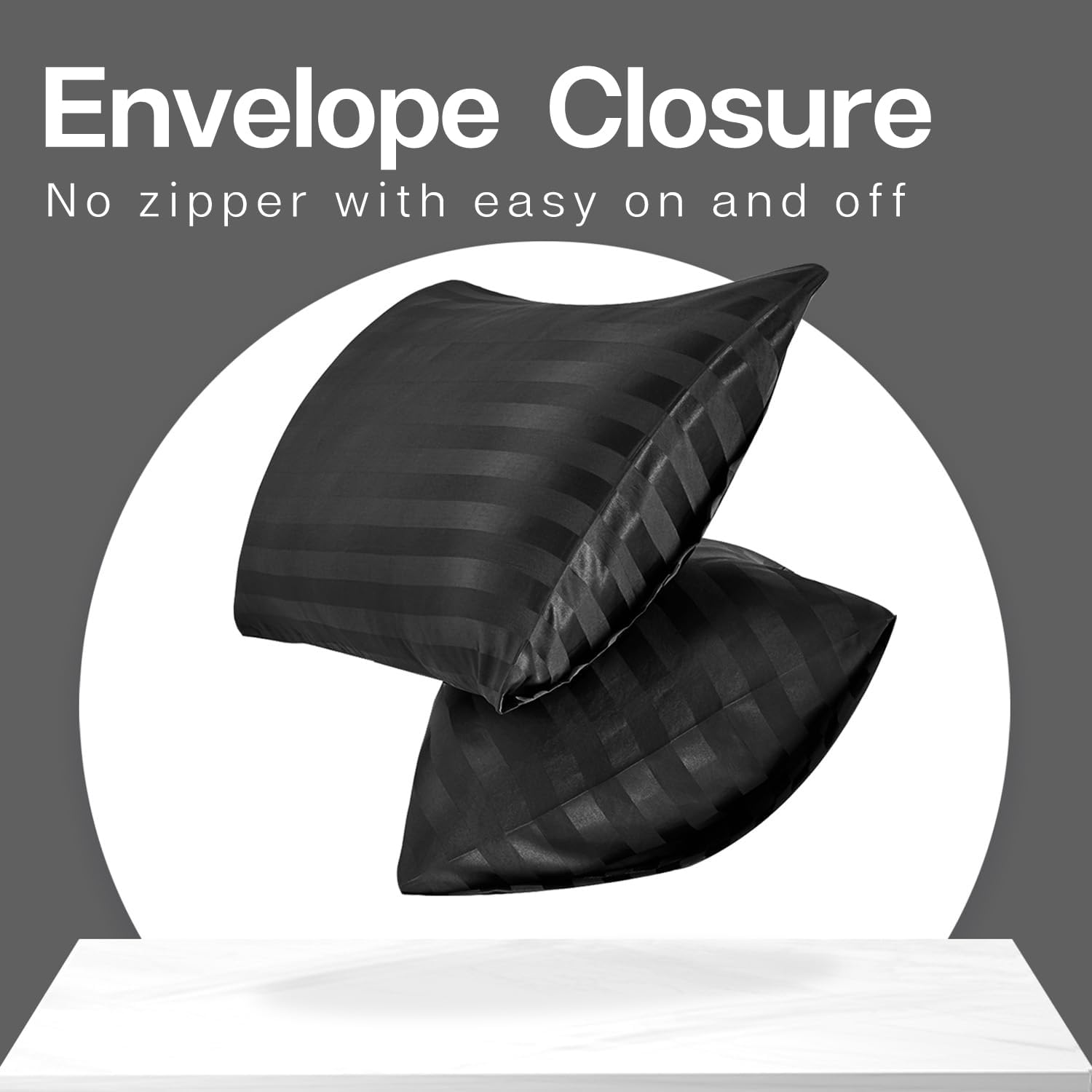 MR&HM Satin Pillowcase for Hair and Skin, Silk Satin Pillowcase 2 Pack, Queen Size Pillow Cases Set of 2, Silky Pillow Cover with Envelope Closure (20x30, Black Striped)