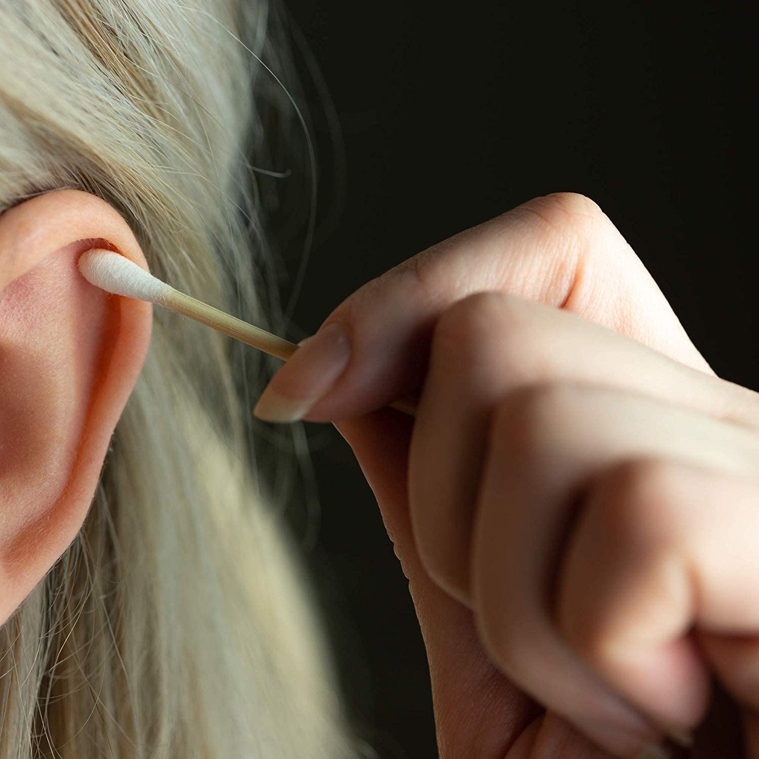 - Award Winning Bamboo Cotton Swabs - EcoSlurps Bamboo Cotton buds are made from sustainably sourced mosa bamboo wood and organic Cotton. Individually packed so they can be shared around the family, our compostable double-ended white bamboo cotton buds are used for safely cleaning ears, piercings and toes, as medical q-tips, applying or removing makeup, cleaning household items. Our bamboo ear buds are odourless, chemical and splinter free. Suitable for Adults, Kids & Pets.