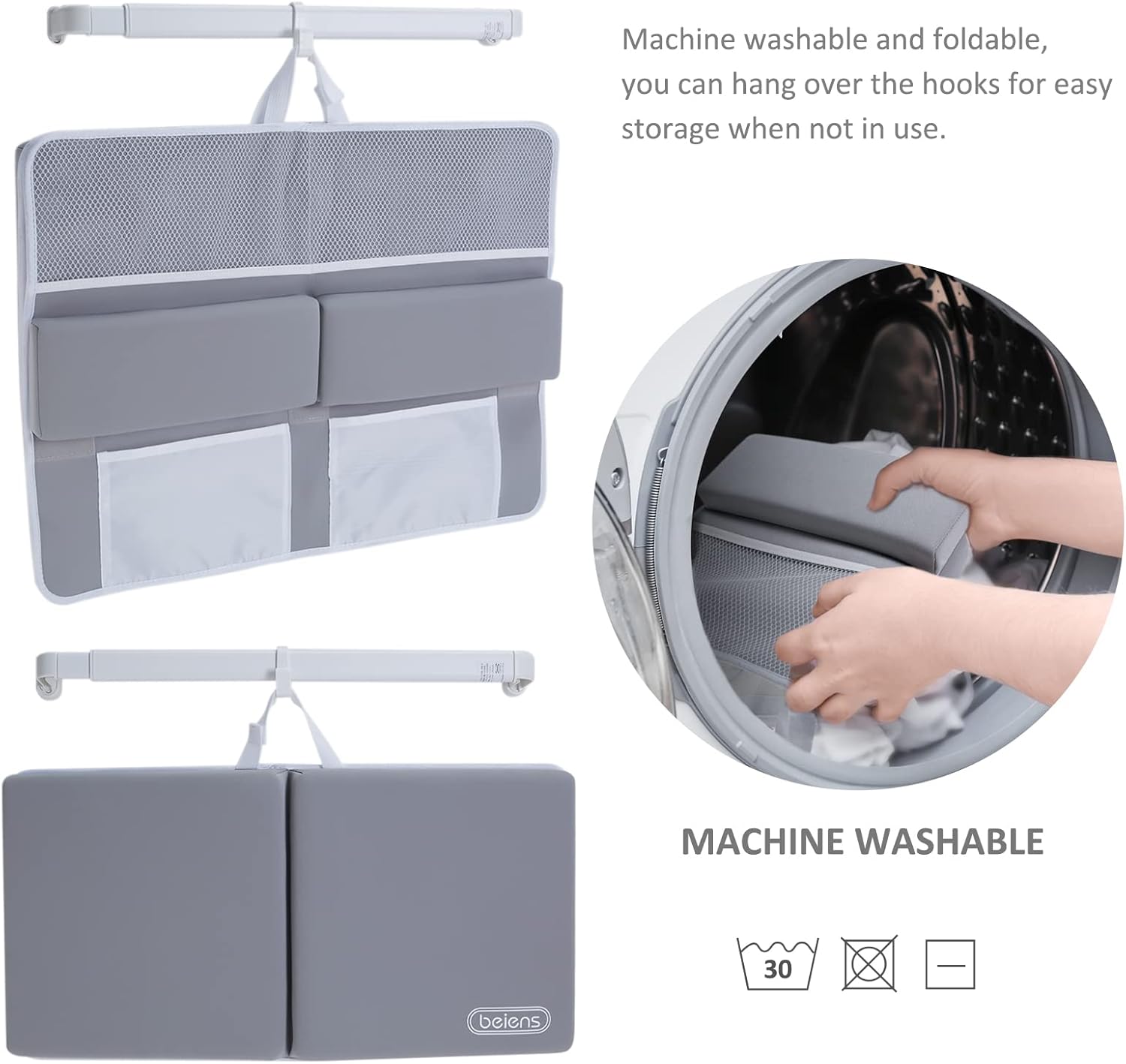 beiens Bath Kneeler and Elbow Rest Pad Set - 1.5'' Comfortable Baby Bath Kneeler Pads, Thick Quick Dry Kneeling Pad Support for Knee& Arm, Large Bathtub Mat with Toy Organizer for Happy Baby Bath Time