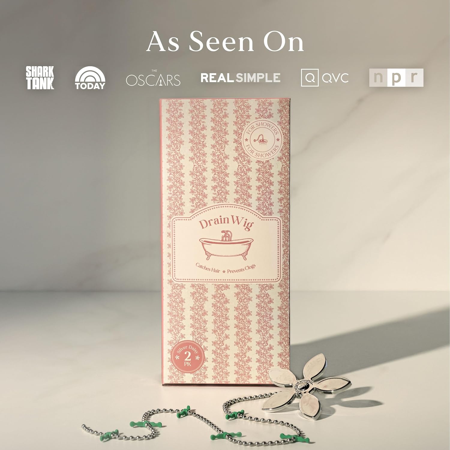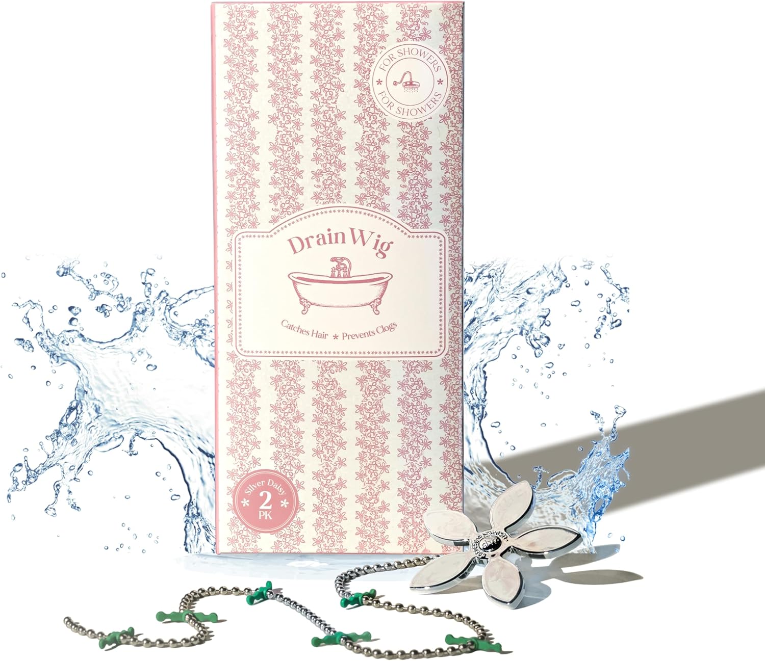 DrainWig Shower Drain Hair Catcher – Disposable Silver Flower (2-Pack) – No-Touch Hair Removal for Flat Shower Drains – As Seen on Shark Tank