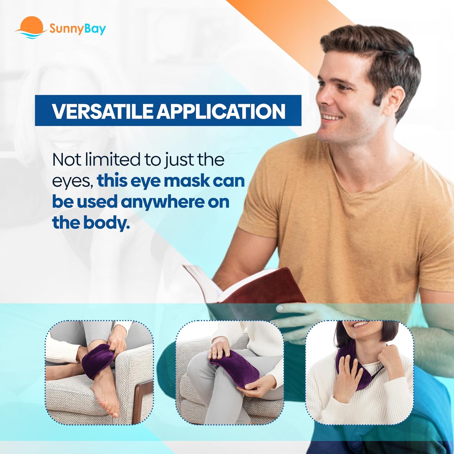 SunnyBay Microwavable Heated Eye Mask for Dry Eyes, Moist Cold and Warm Compress for Eyes with Elastic Strap and Unscented Hydra Bead Filling, Washable Soft Plush Material, 7.9 x 4.3 Inches