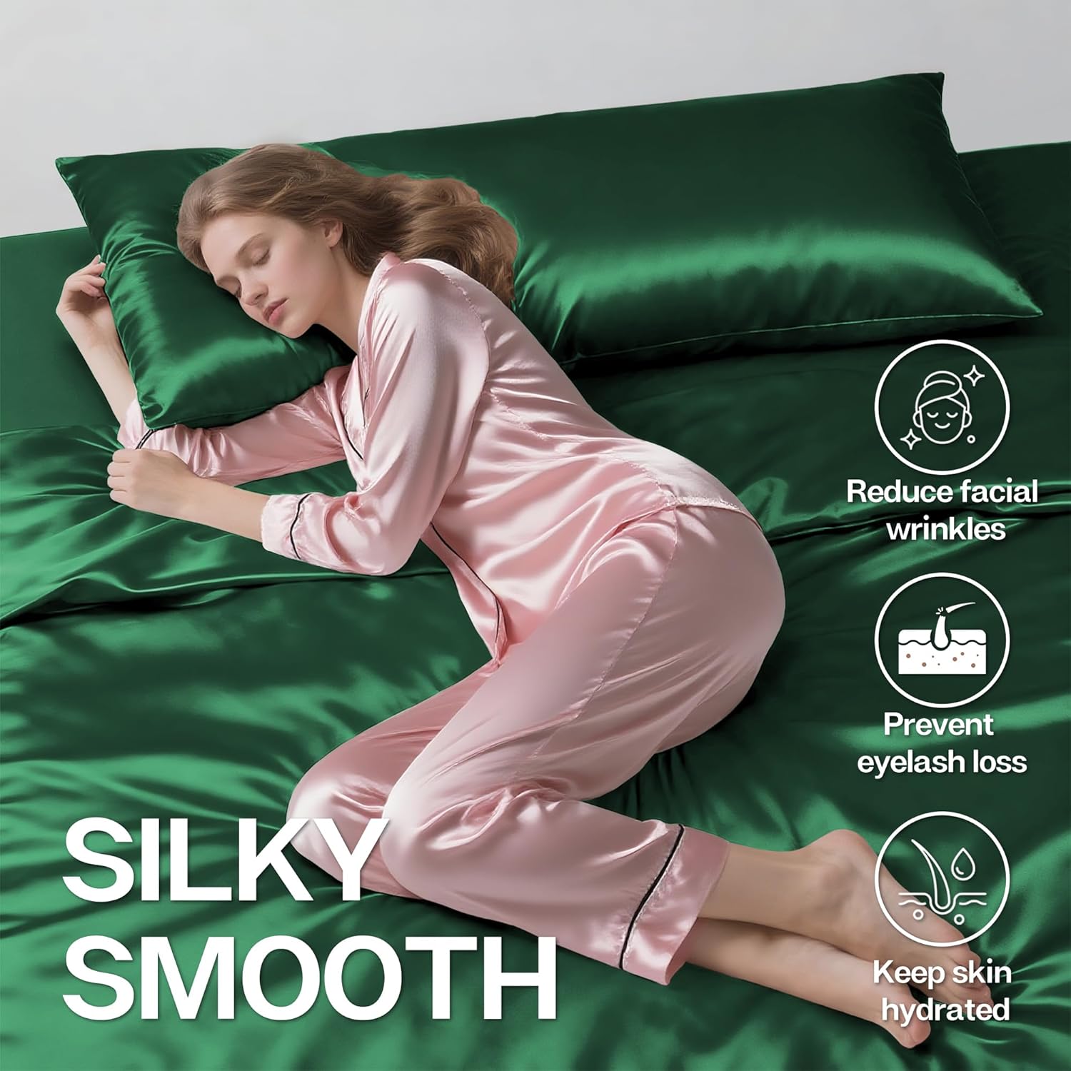 - 【Enhance Your Beauty Sleep】Sleeping on our hypoallergenic non-irritating satin pillowcase can help your skin, too. With less friction tugging at your skin as you sleep, you will experience fewer sleep lines which can equal fewer wrinkles over time.