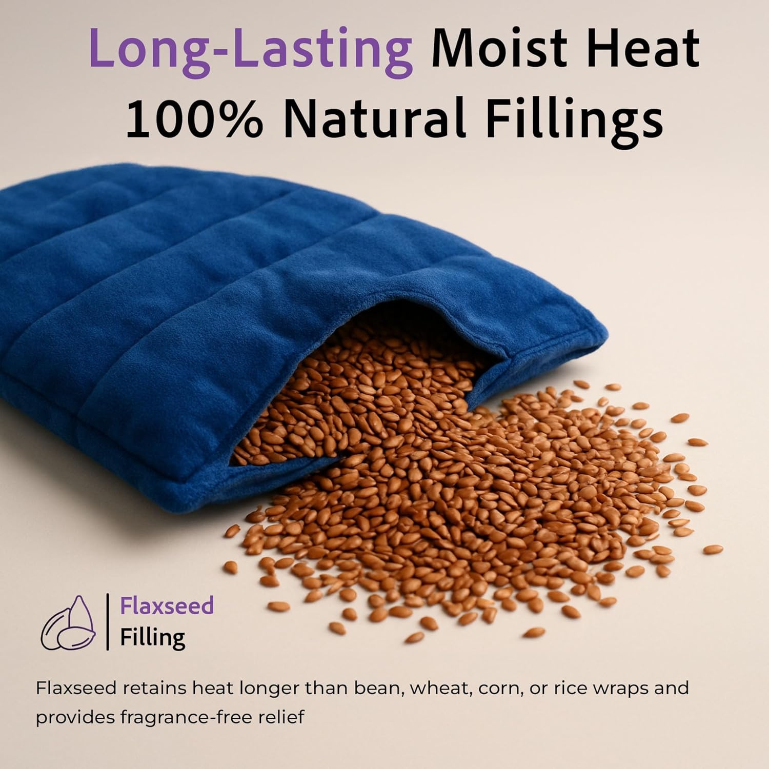 - NATURAL MOIST HEAT: Filled with 100% flaxseed to provide deep-penetrating moist heat that eases muscle tension, cramps, and stress faster than dry heat packs.
