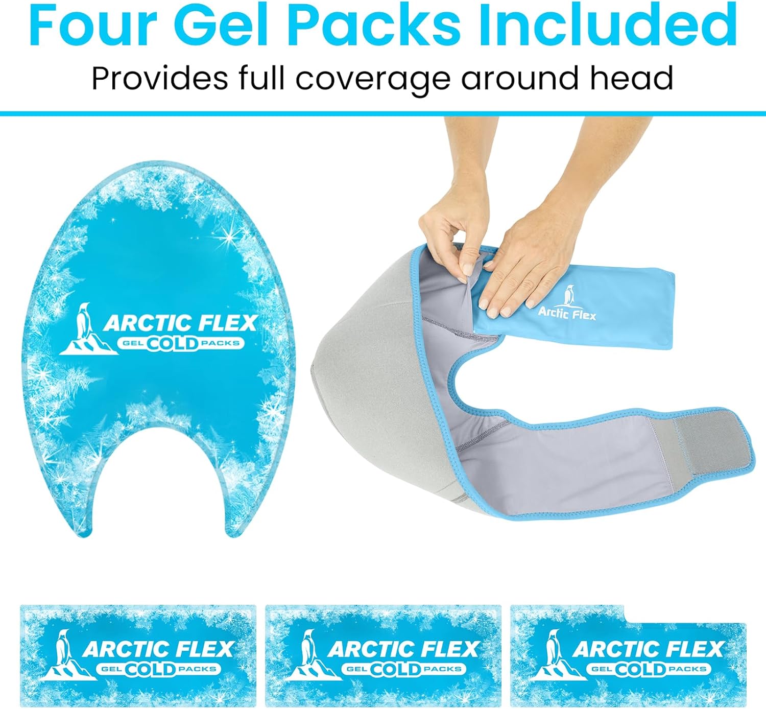 - SOOTHING HOT OR COLD THERAPY: Easily heat or cool the Arctic Flex gel packs for customizable hot or cold therapy to relieve painful headaches. The full head wrap includes four latex-free ice packs, each filled with a unique gel that remains flexible when frozen to contour to the shape of the head for targeted relief.