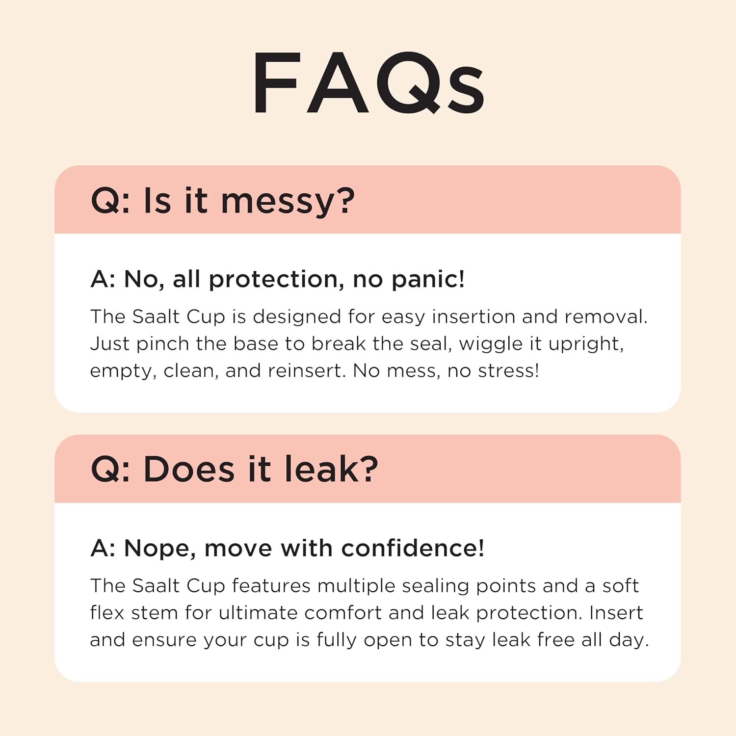 - ALL-DAY CONFIDENCE: Designed for worry-free wear from morning to night, this reusable menstrual cup provides reliable protection with no leaks, reduced odor, and fewer bathroom trips so you can sleep, work, travel, or exercise without needing backup.