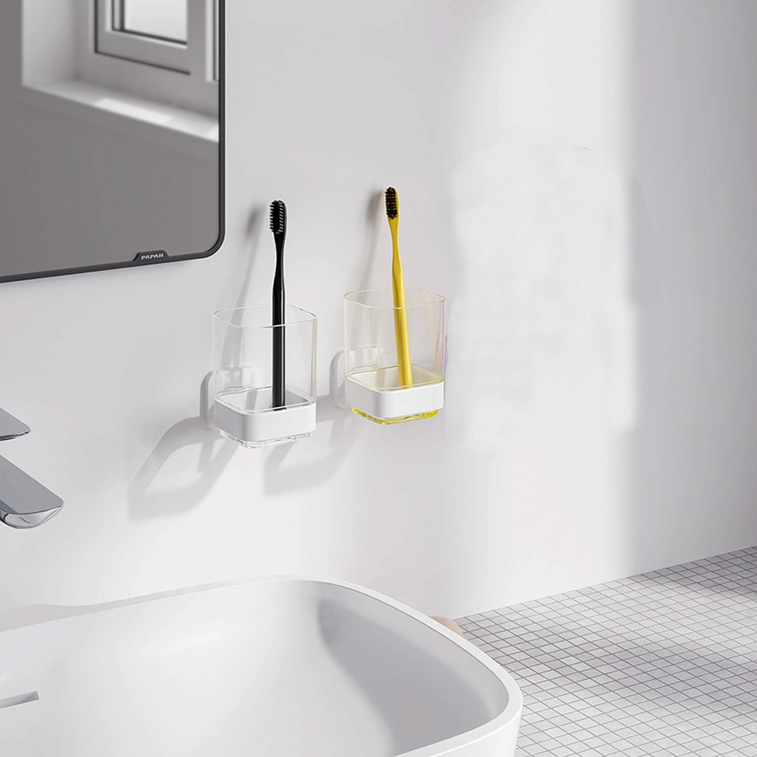 - This wall mounted toothbrush holder is easy to install, Toothbrush Holder No drilling Self-adhesive. for glass, marble, tile, Metal, Plastic Surface, Lacquer plate, etc. Inapplicable surface: Whitewash wall, Rough cement wall, Brick wall, Wallpaper. etc.