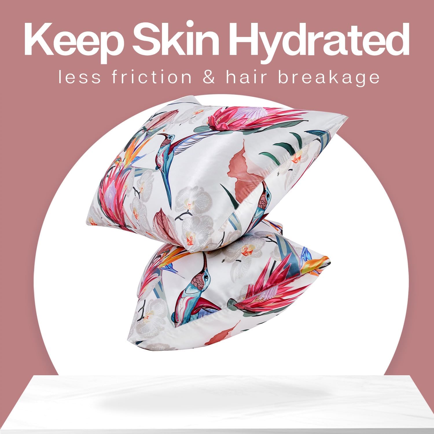 MR&HM Satin Pillowcase for Hair and Skin, Silk Satin Pillowcase 2 Pack, King Size Pillow Cases Set of 2, Silky Pillow Cover with Envelope Closure (20x40, Floral Bird)