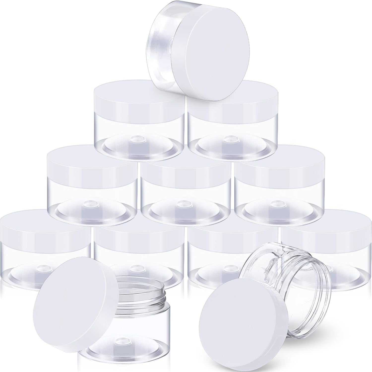 12 Pack 3 oz Plastic Container Jars with Lids Round Clear Travel Cosmetic Container Jars for Toiletries, Lotion, Cream, Ointments, Makeup, Rhinestone, Samples, Kitchen Storage (White)
