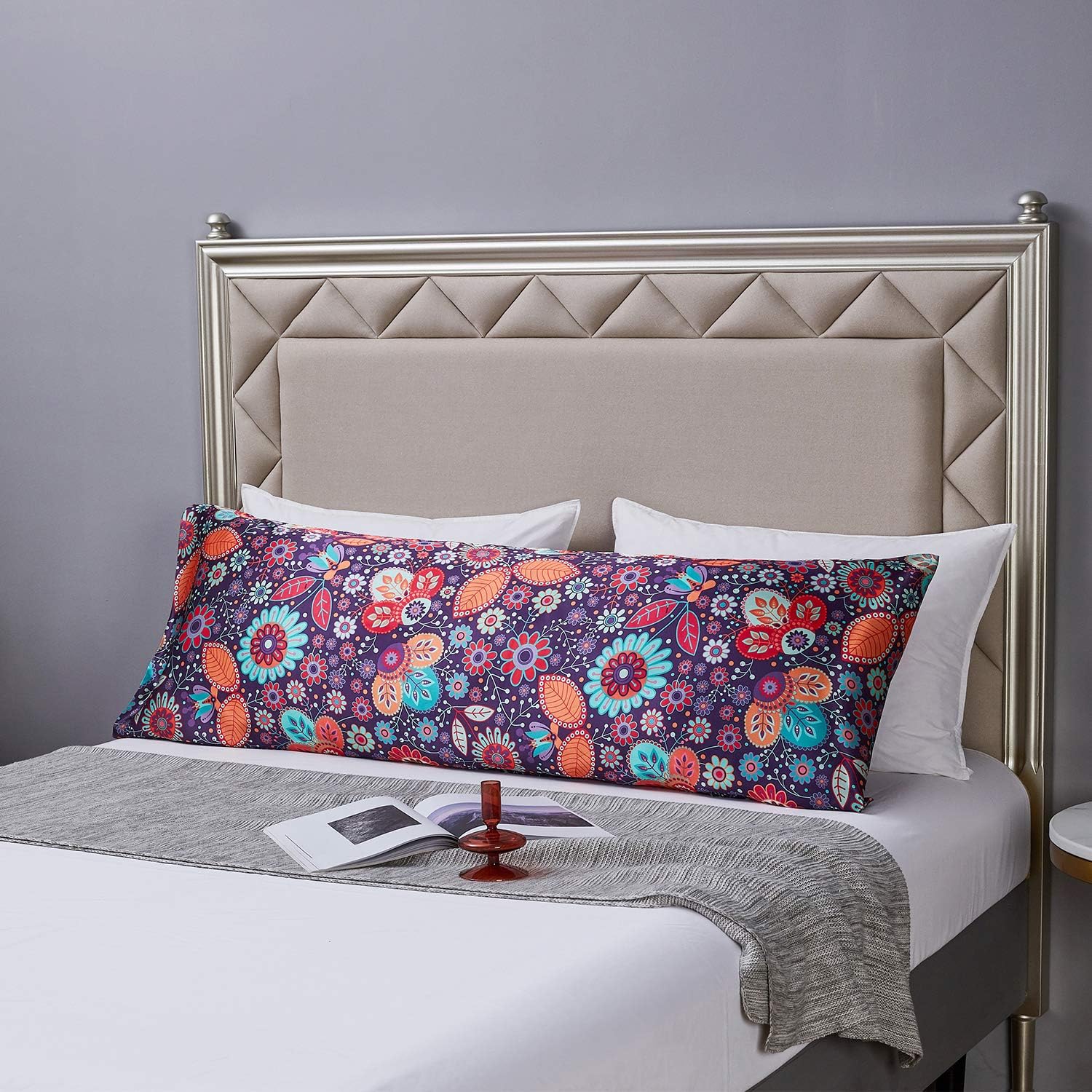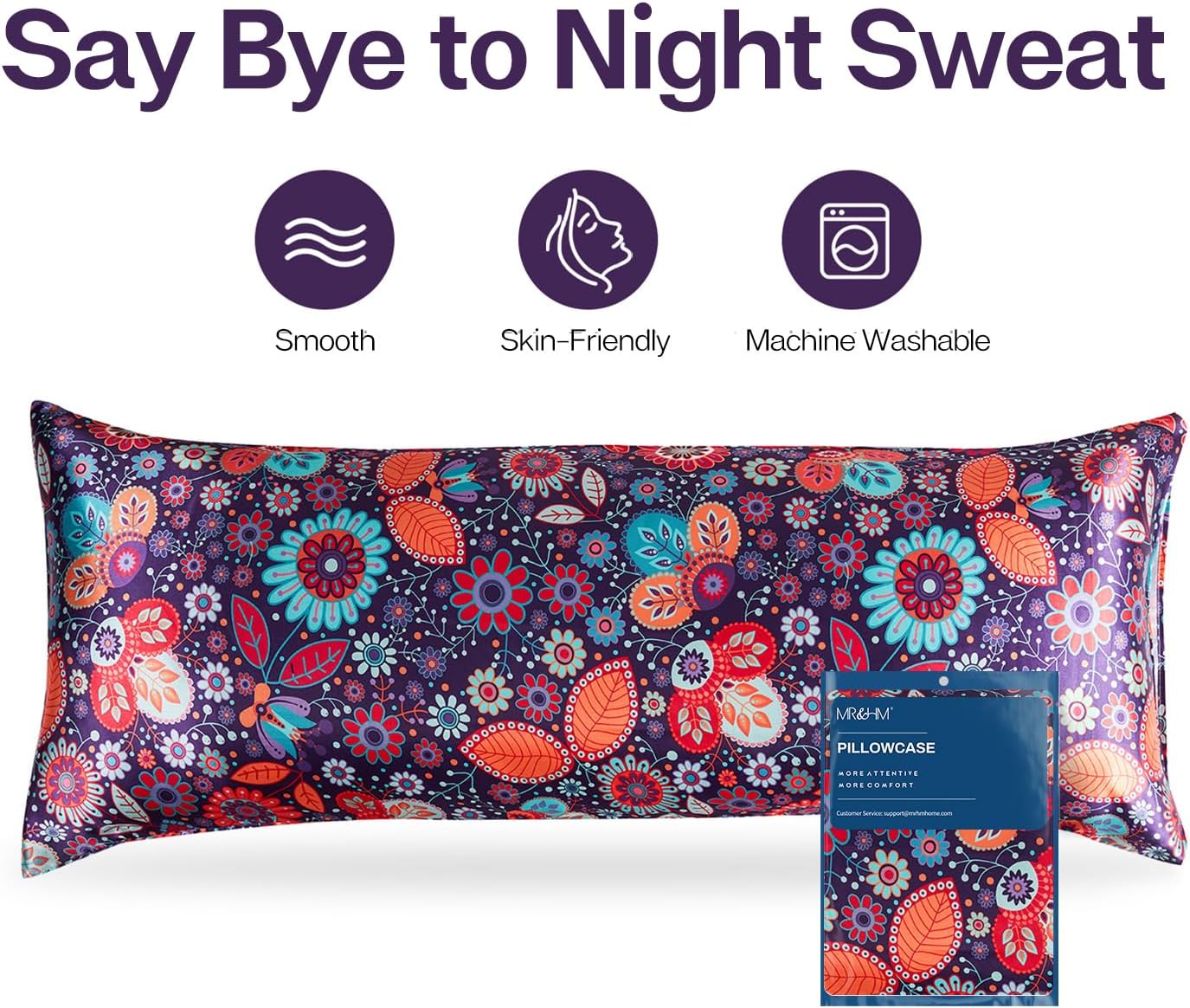 MR&HM Satin Body Pillow Cover, Soft and Breathable Body Pillow Case with Envelope Closure, Cooling and Silky Long Pillowcase for Hair and Skin,Grey (20x54, Sunflower)
