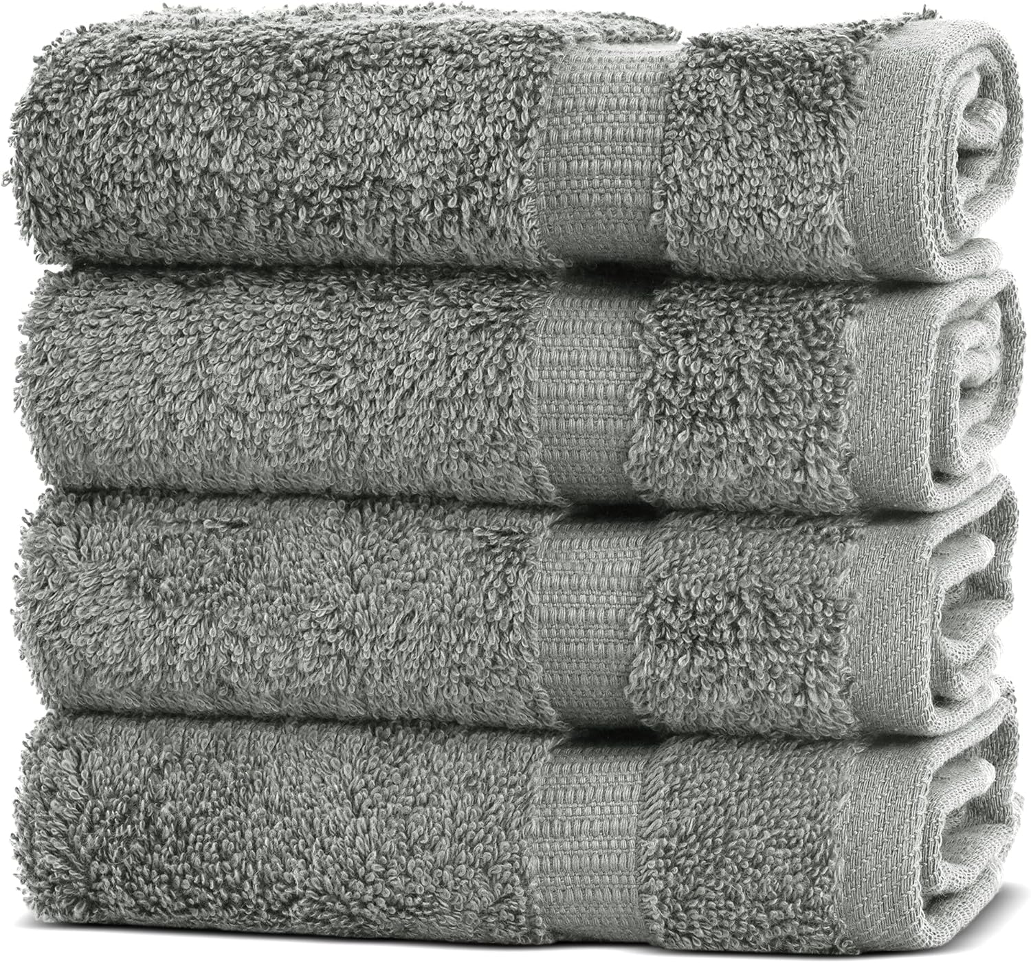 Chakir Turkish Linens | Hotel & Spa Quality 100% Cotton Premium Turkish Towels | Soft & Absorbent (4-Piece Washcloths, Gray)