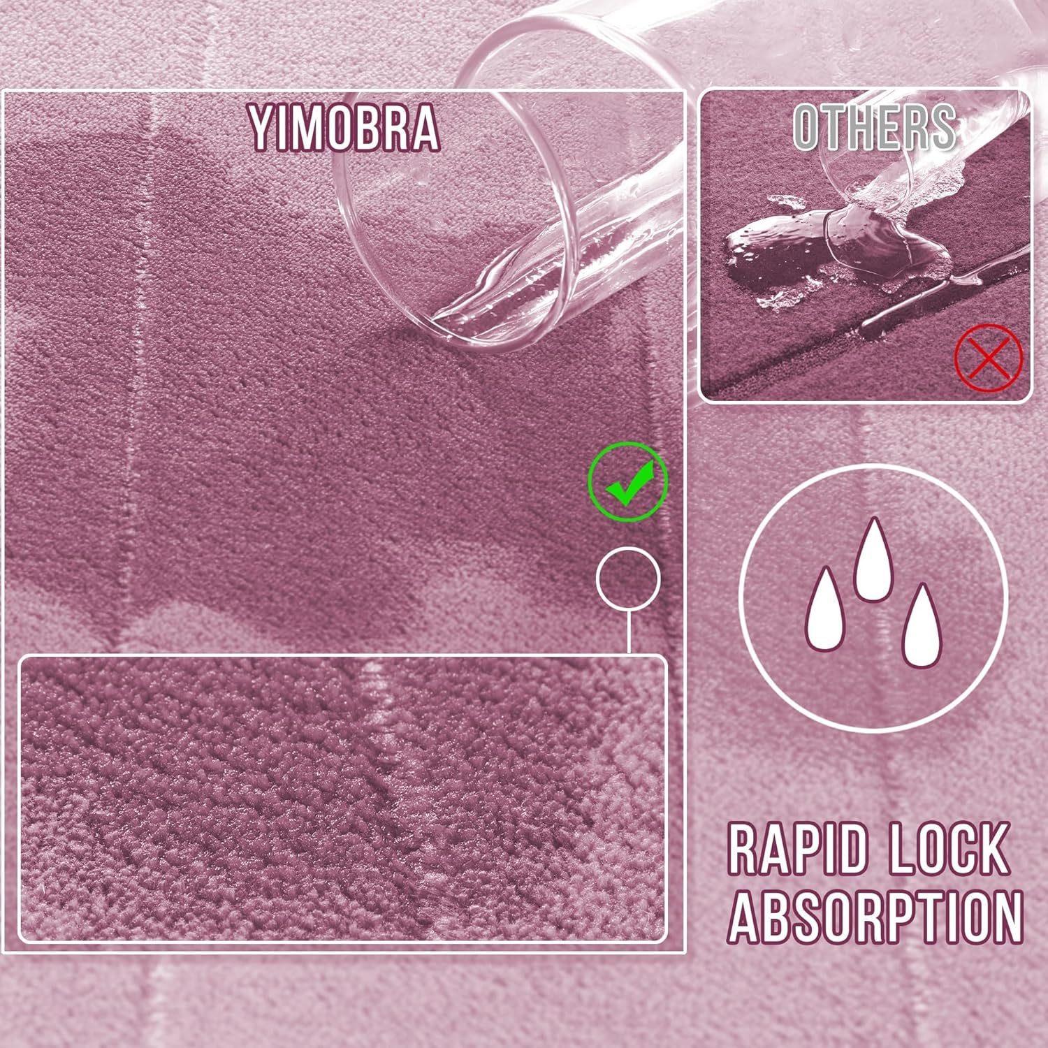 - 【Rapid Lock Absorption: Coral Velvet + Deep Foam Core】Yimobra bath mat engineered with premium coral velvet surface and deep memory foam core, our Rapid Lock technology instantly traps water. The coral velvet fibers actively pull in liquid while the high-density foam core prevents seep-through, ensuring maximum dryness after every use