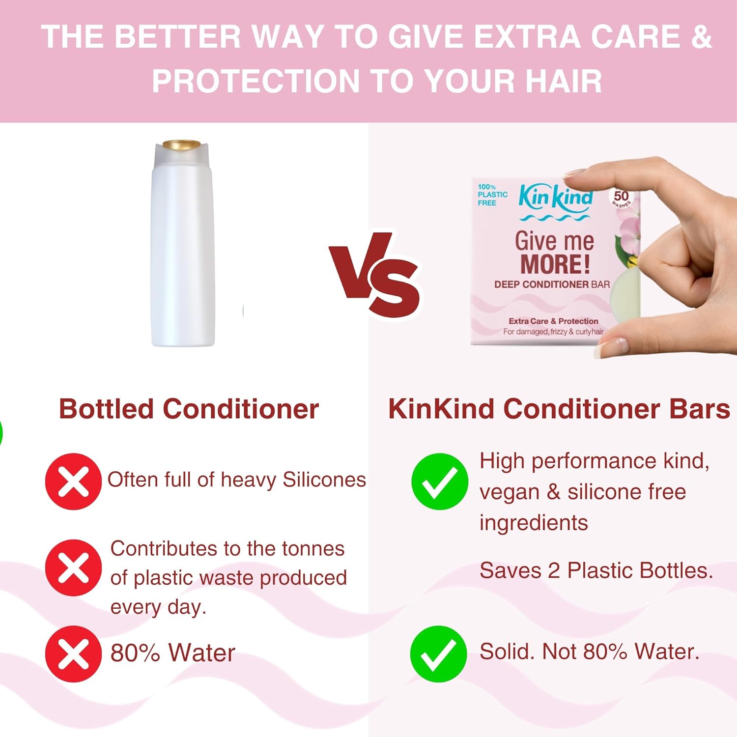 KinKind Give me MORE! Deep Conditioner Bar. Bar Conditioner for Hair - Perfect for Damaged, Frizzy & Curly Hair. Vegan & Cruelty Free. Up to 50 Washes.