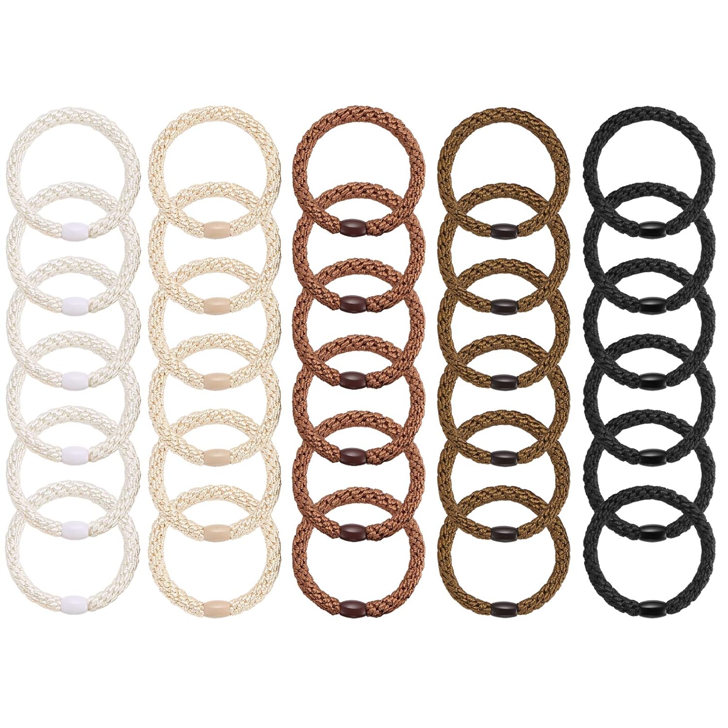 Hair Ties for Women Girls, Funtopia 30 Pcs Elastics Hair Bands Ponytail Holders for Thick Hair, No Damage No Crease Hair Elastics (Black/Brown/White/Beige/Coffee)