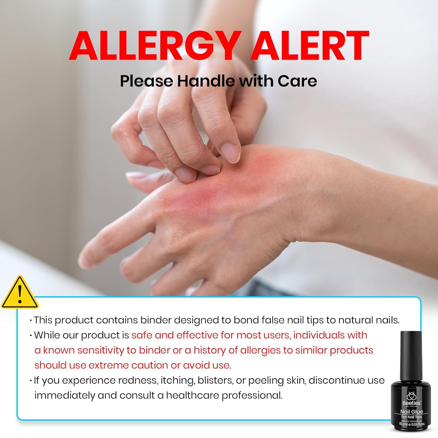 - 【Warning】: This product is professionally formulated and should be used only for nails. Read directions for use carefully. Avoid contact with eyes, mouth, and skin. In case of contact with eyes, mouth, or skin, rinse immediately with water. If any adverse reaction occurs, seek medical attention immediately. Stop using the product if redness and itching develop. Keep out of reach of children.