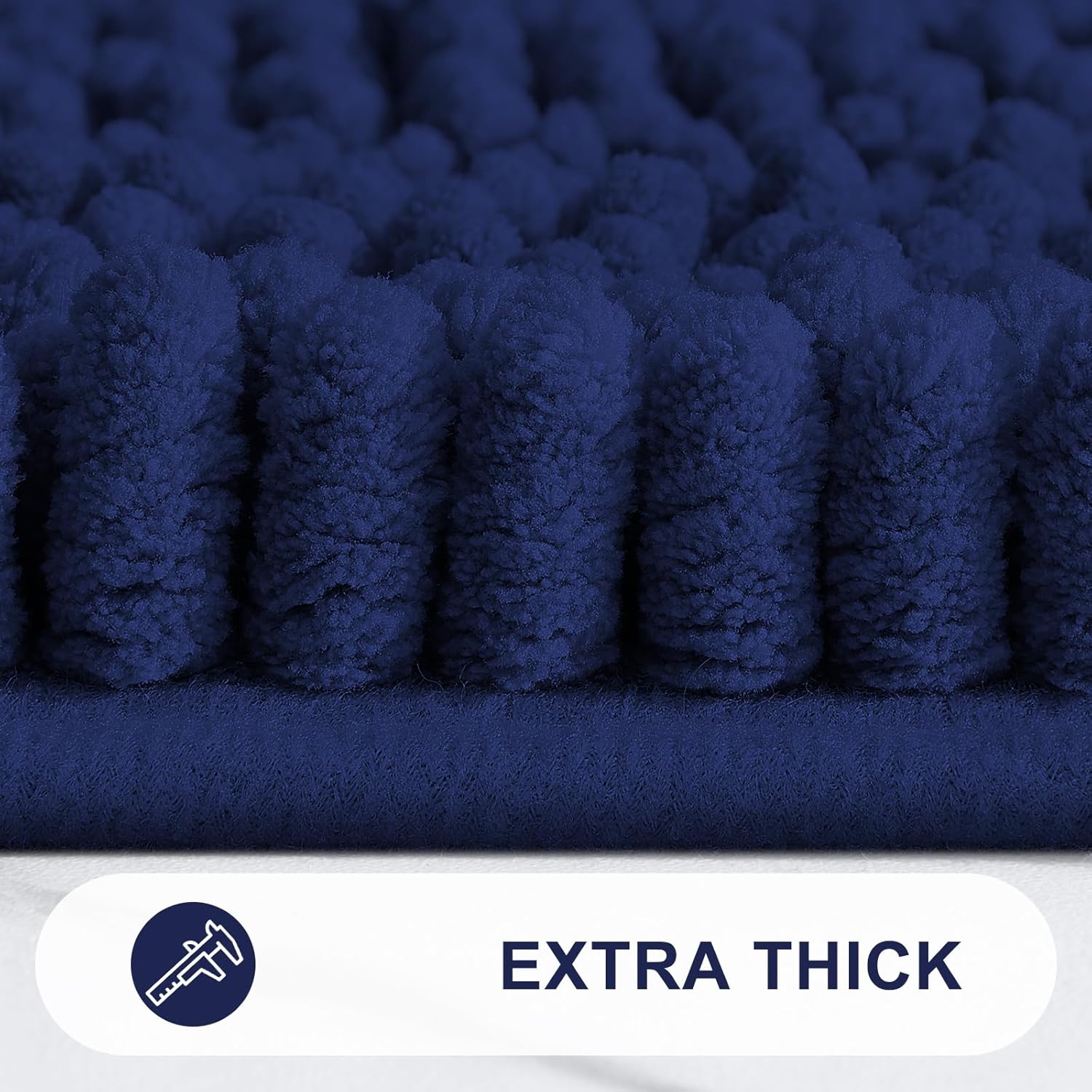 Grandaily Chenille Striped Bathroom Rugs 30x20, Extra Thick and Absorbent Bath Mats, Non-Slip Soft Plush Shaggy Shower Carpet, Machine Wash Dry, Bath Rug for Bathroom, (Medium, Navy)