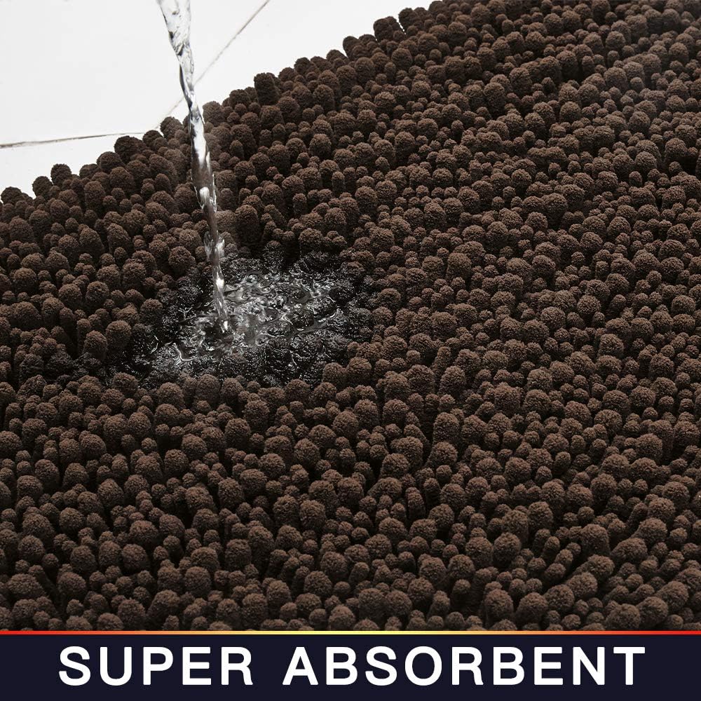 Walensee Bathroom Rug Non Slip Bath Mat (44x24 Inch Brown) Water Absorbent Super Soft Shaggy Chenille Machine Washable Dry Extra Thick Perfect Absorbant Best Large Plush Carpet for Shower Floor