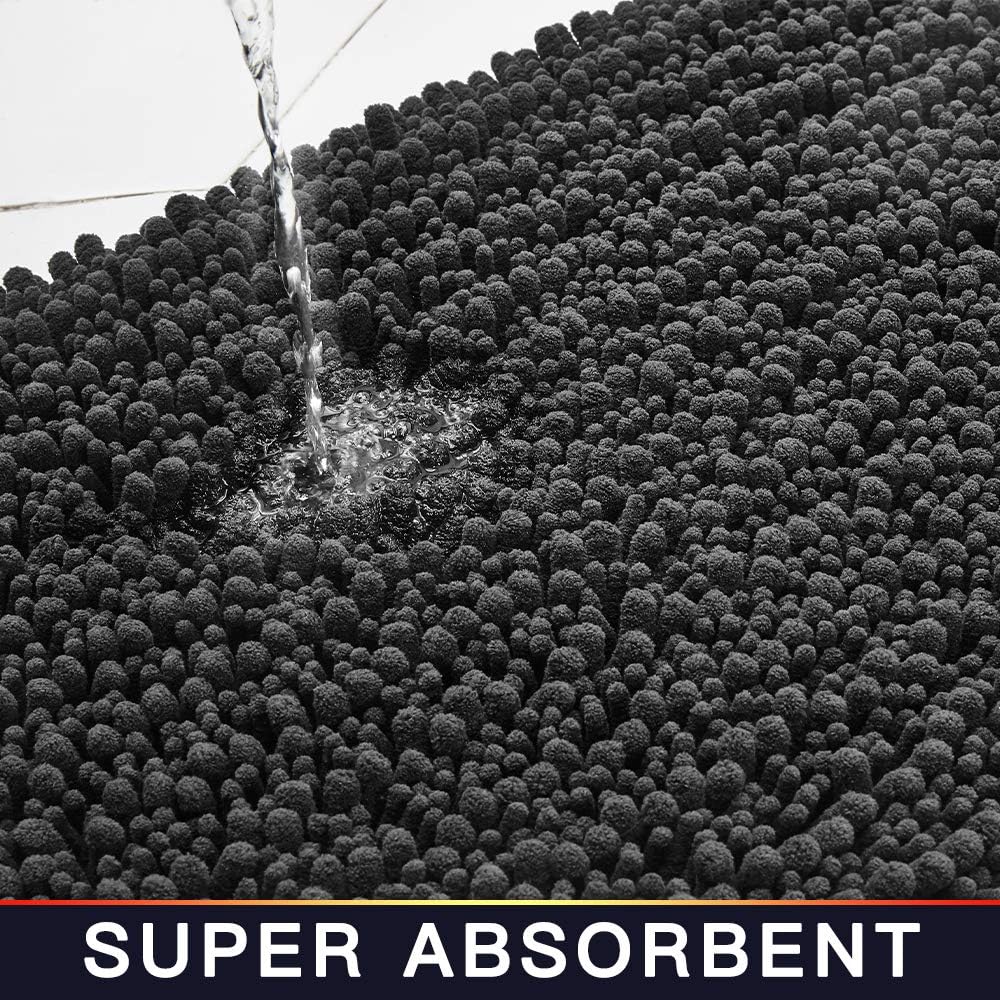 Walensee Bathroom Rug Non Slip Bath Mat (36x24 Inch Dark Grey) Water Absorbent Super Soft Shaggy Chenille Machine Washable Dry Extra Thick Perfect Absorbant Best Large Plush Carpet for Shower Floor